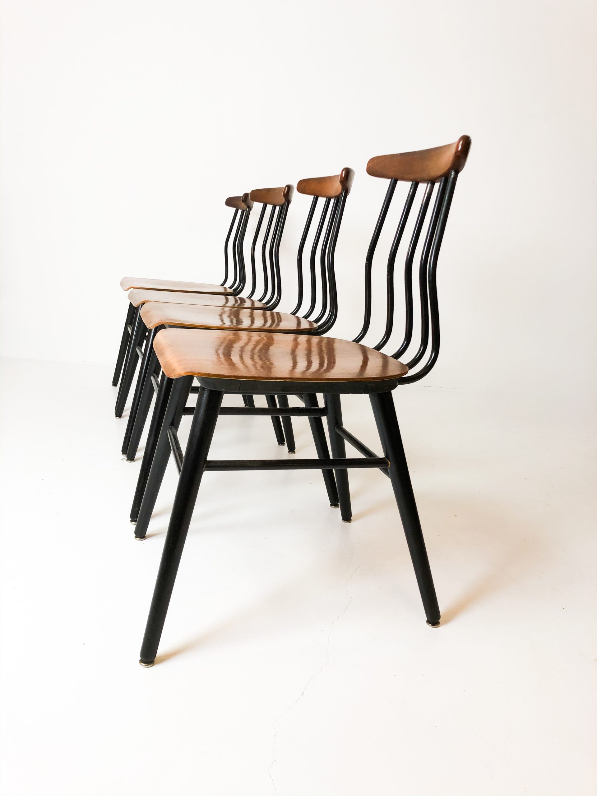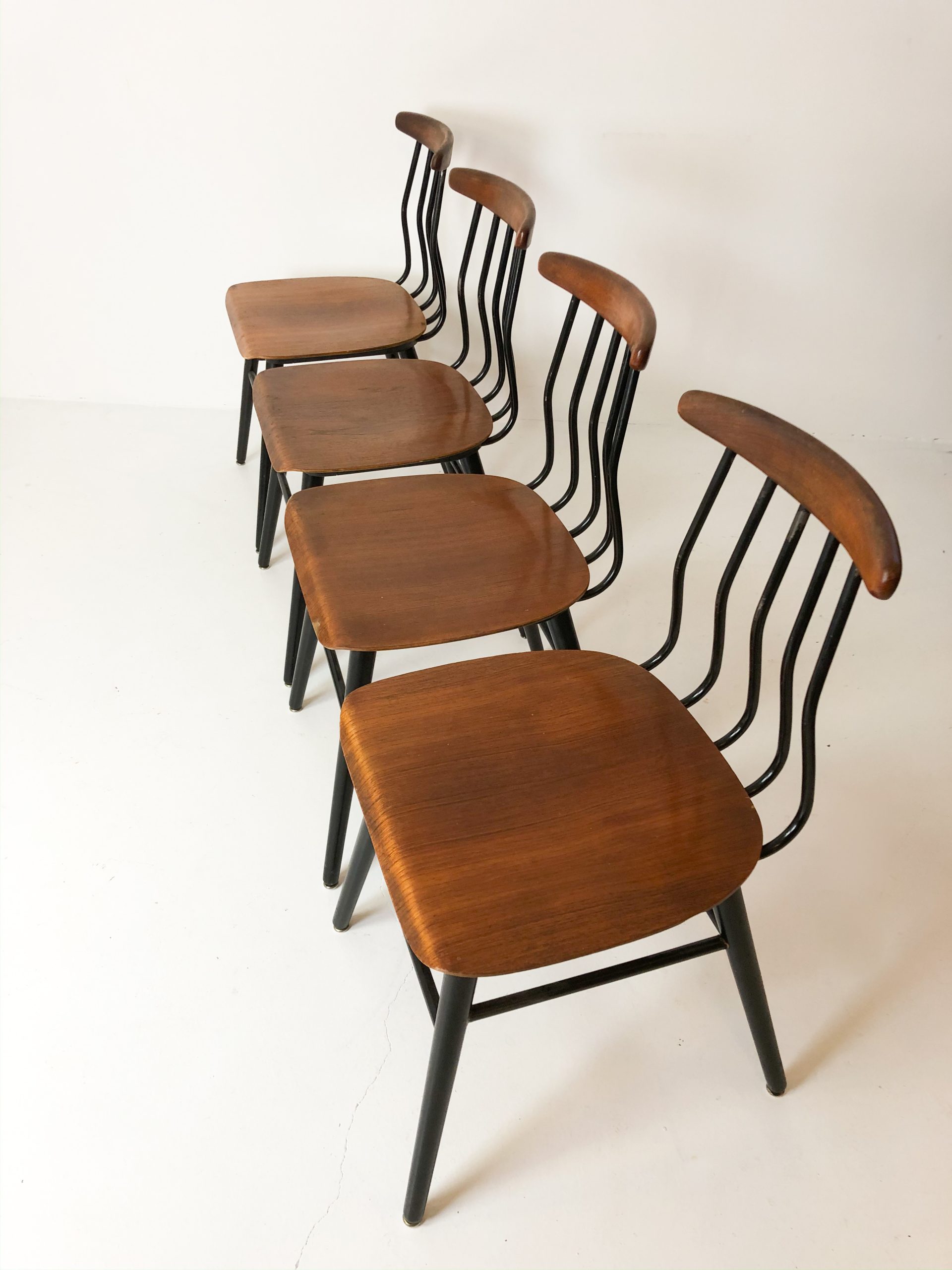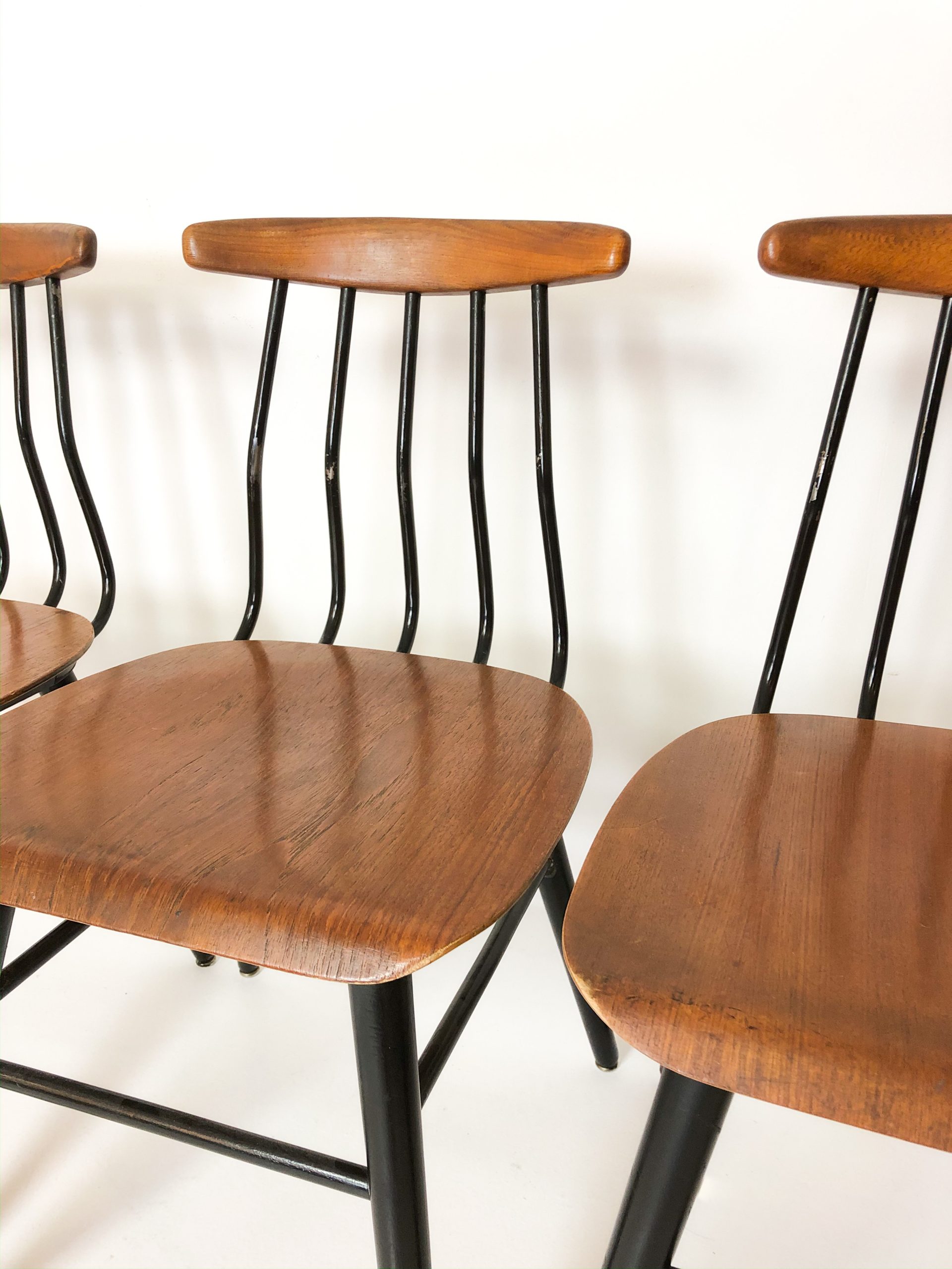 De behöver limmas om. Vill du ha det svarta omlackerat gör vi det, och teaken ska få sig en genomgång av olja och små lagningar i faneren.