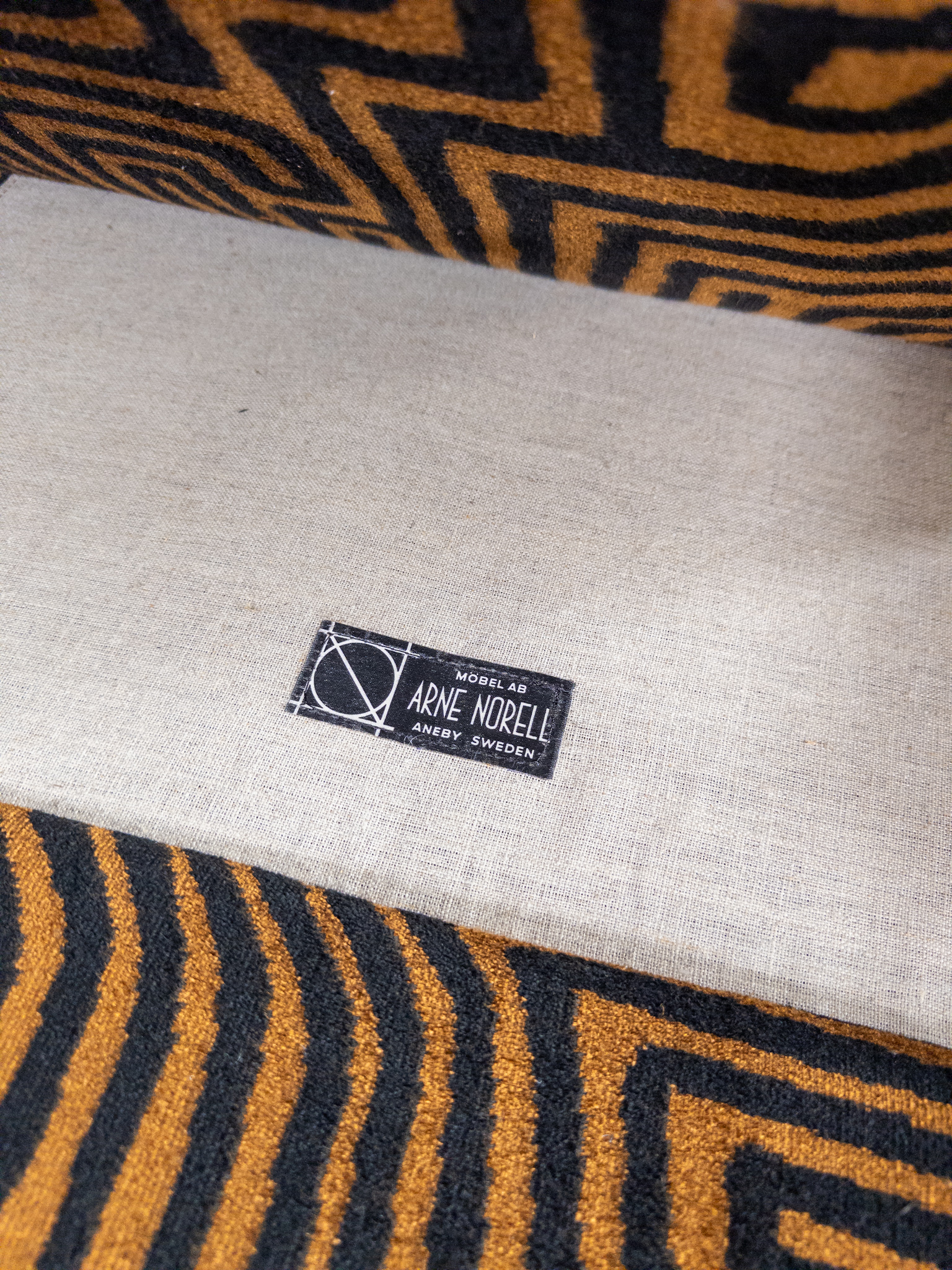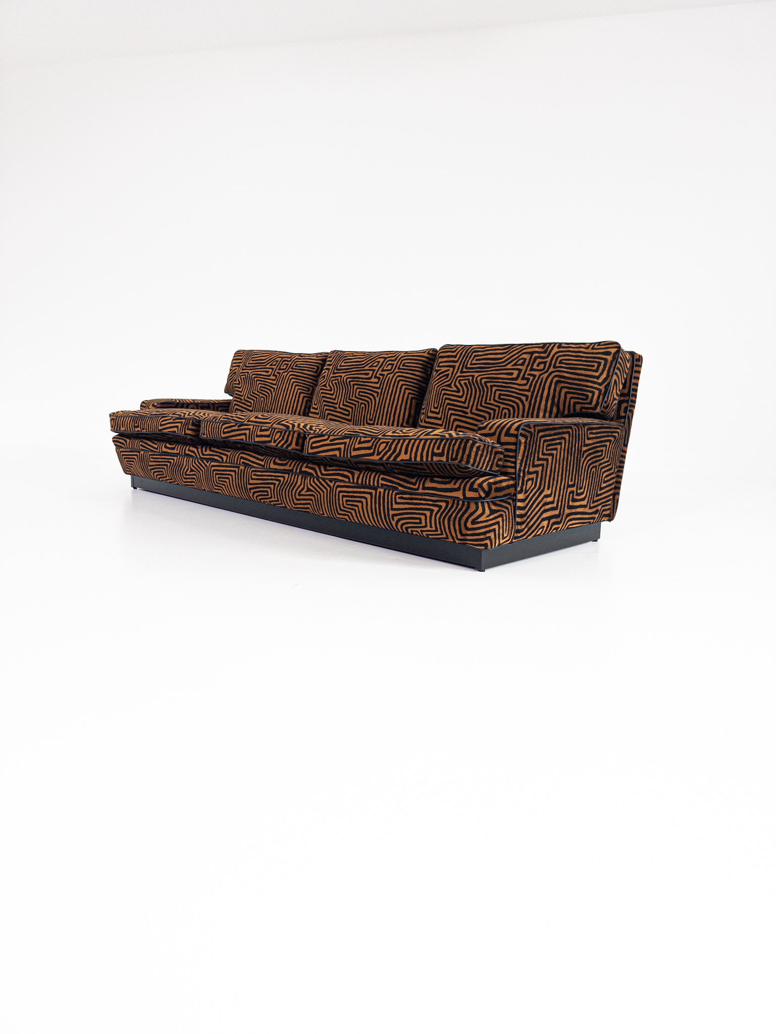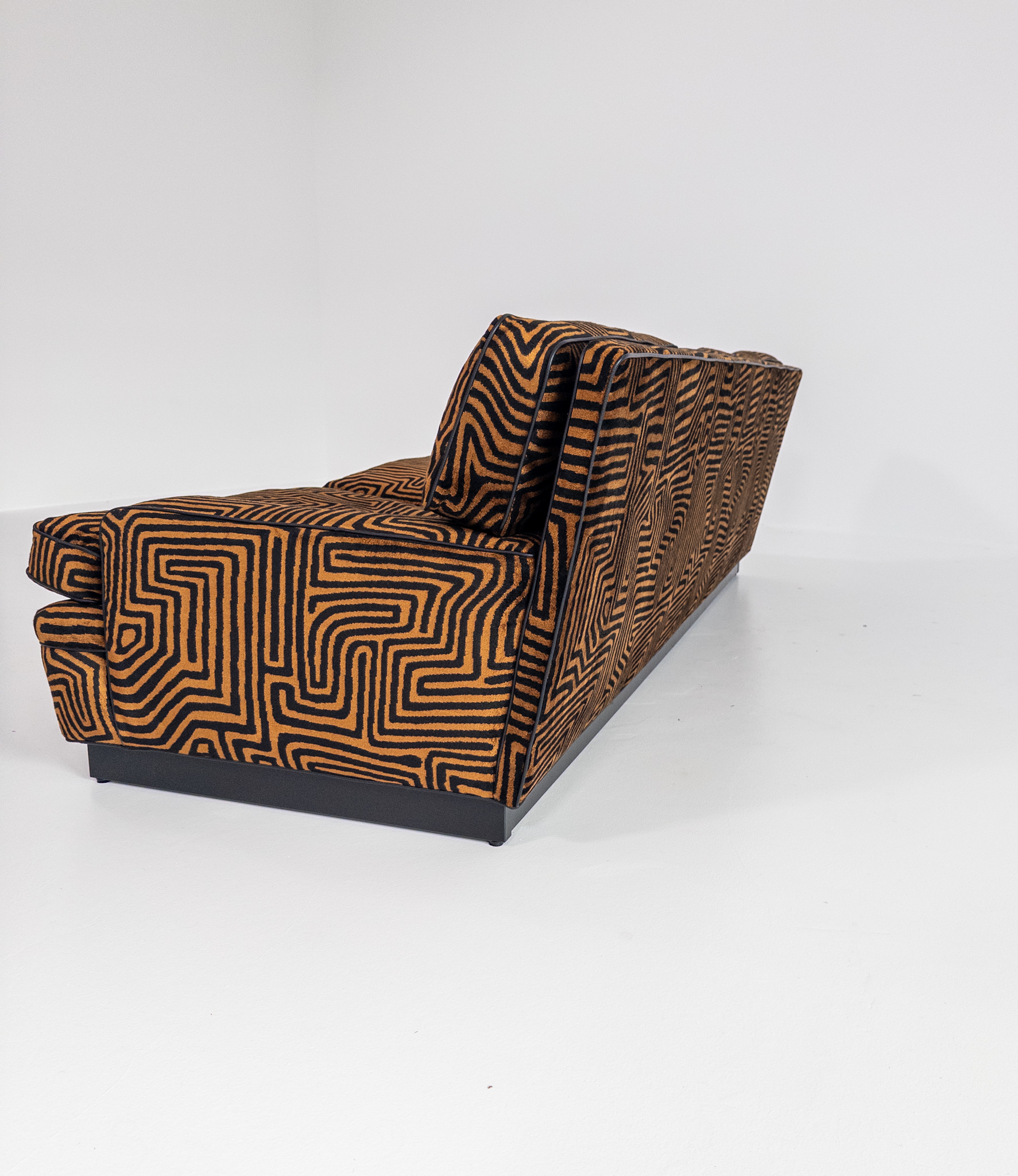 Denna unika To-Die-For Edition är klädd i ett spektakulärt labyrintmönstrat tyg från finska Lauritzon, där varm cognac och ockra möter djupaste svart. Ett konstverk i textil som förvandlar soffan till ett visuellt statement – och rummet till en scen.