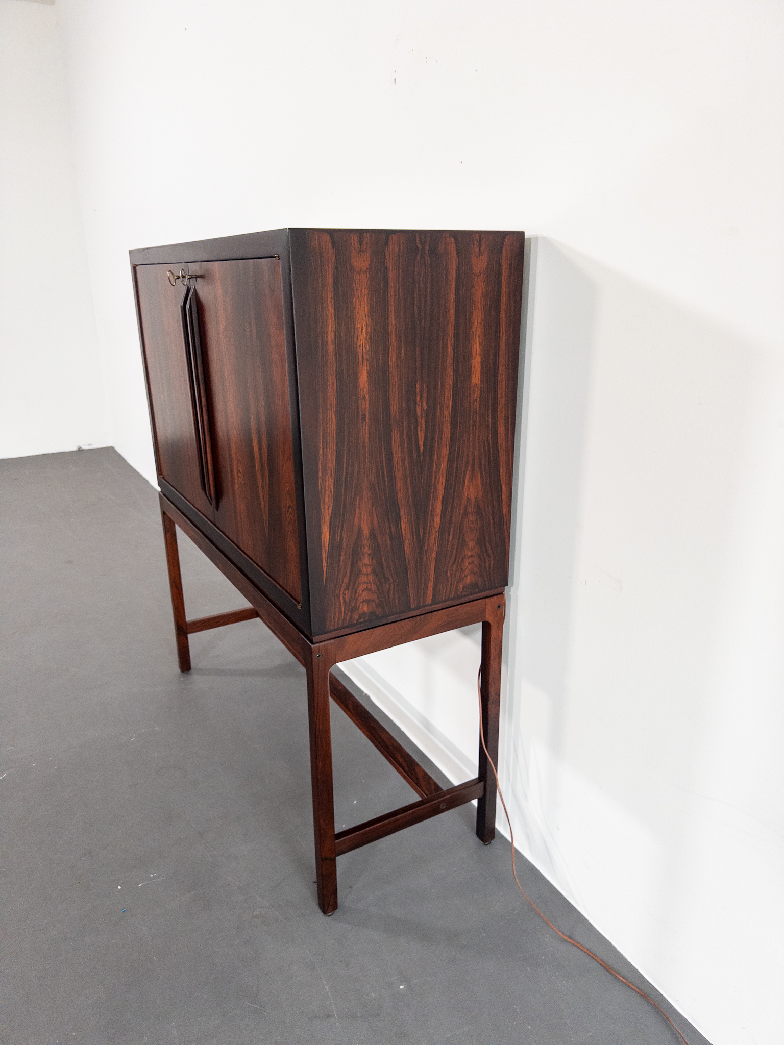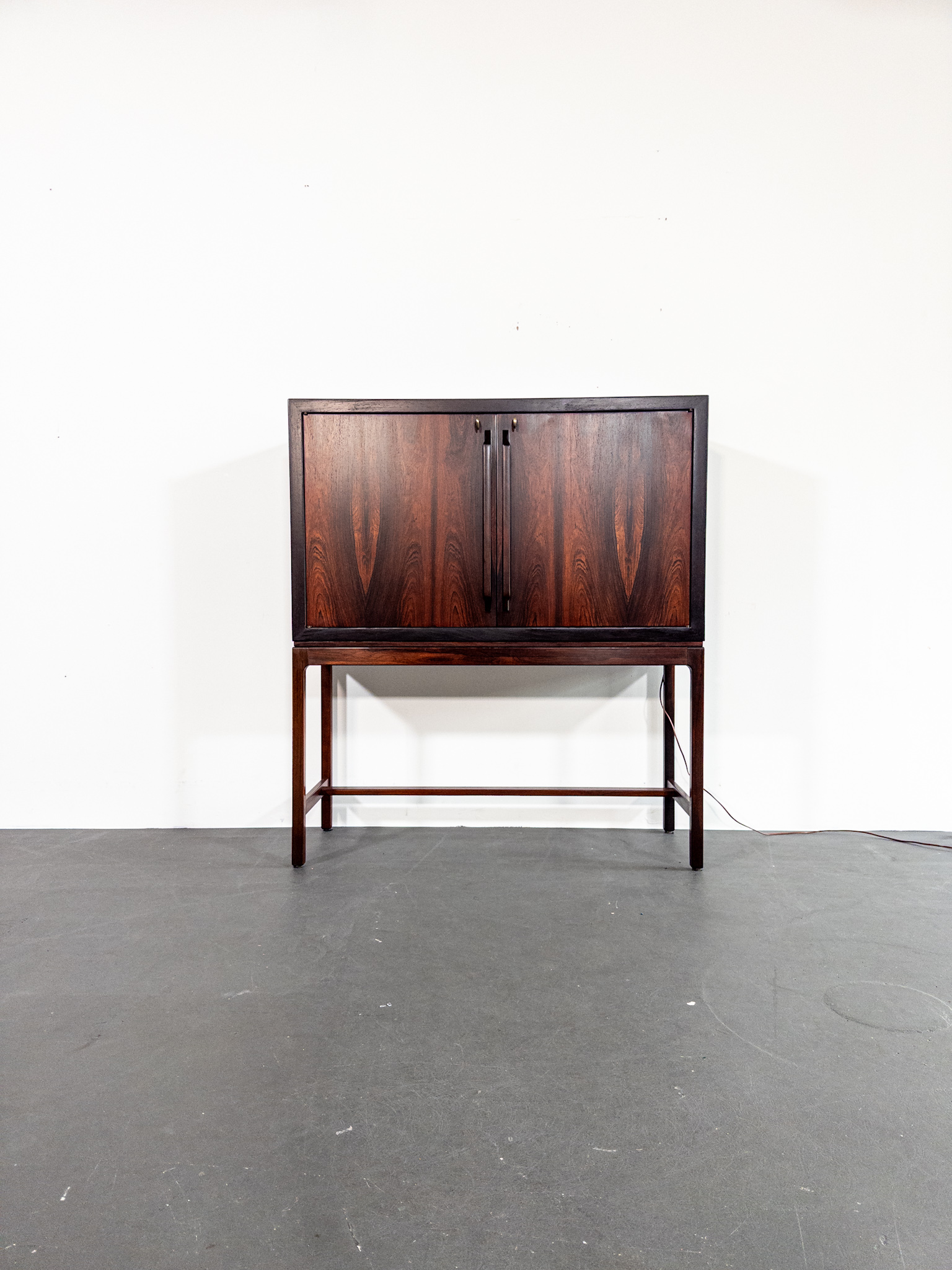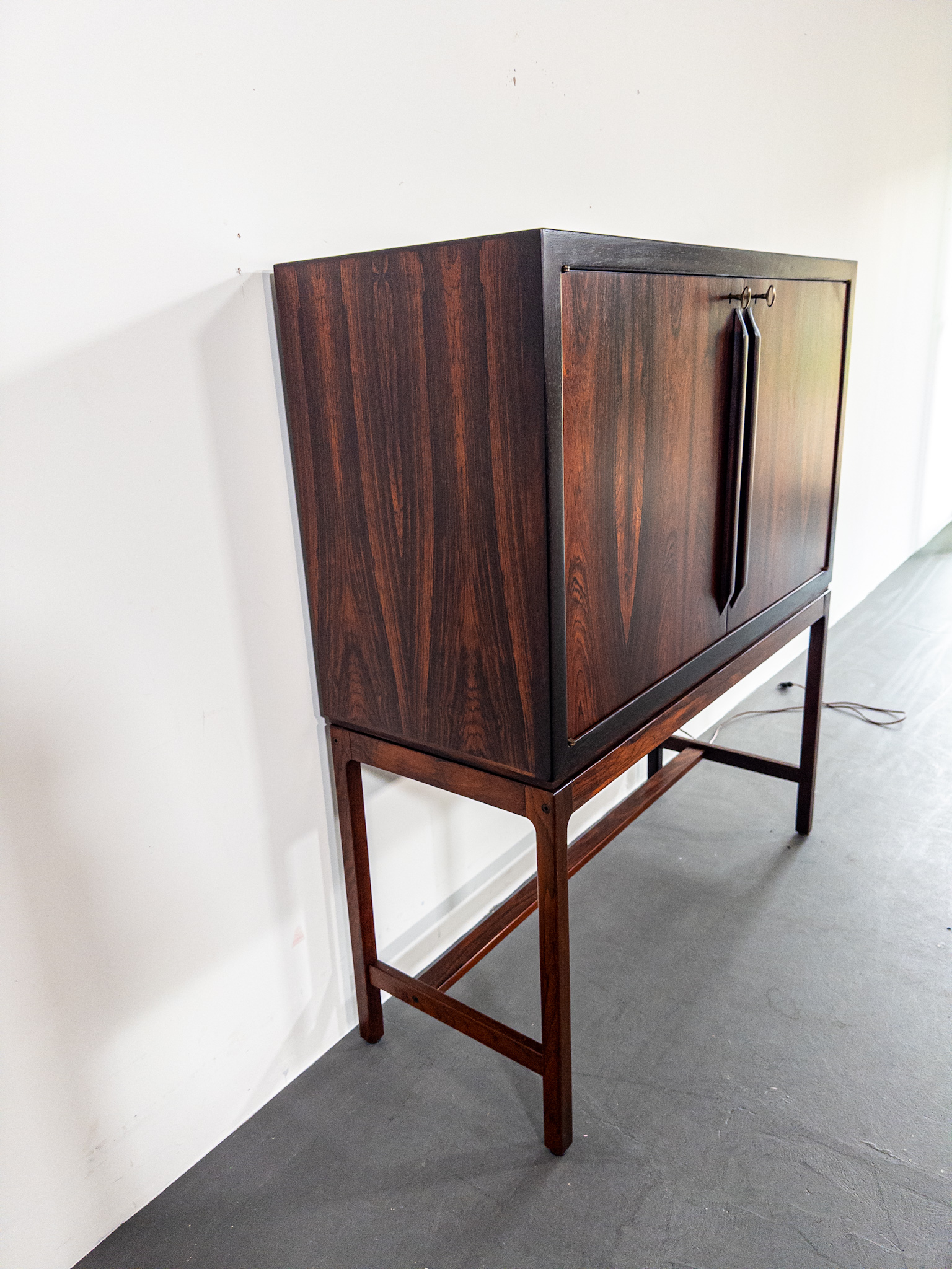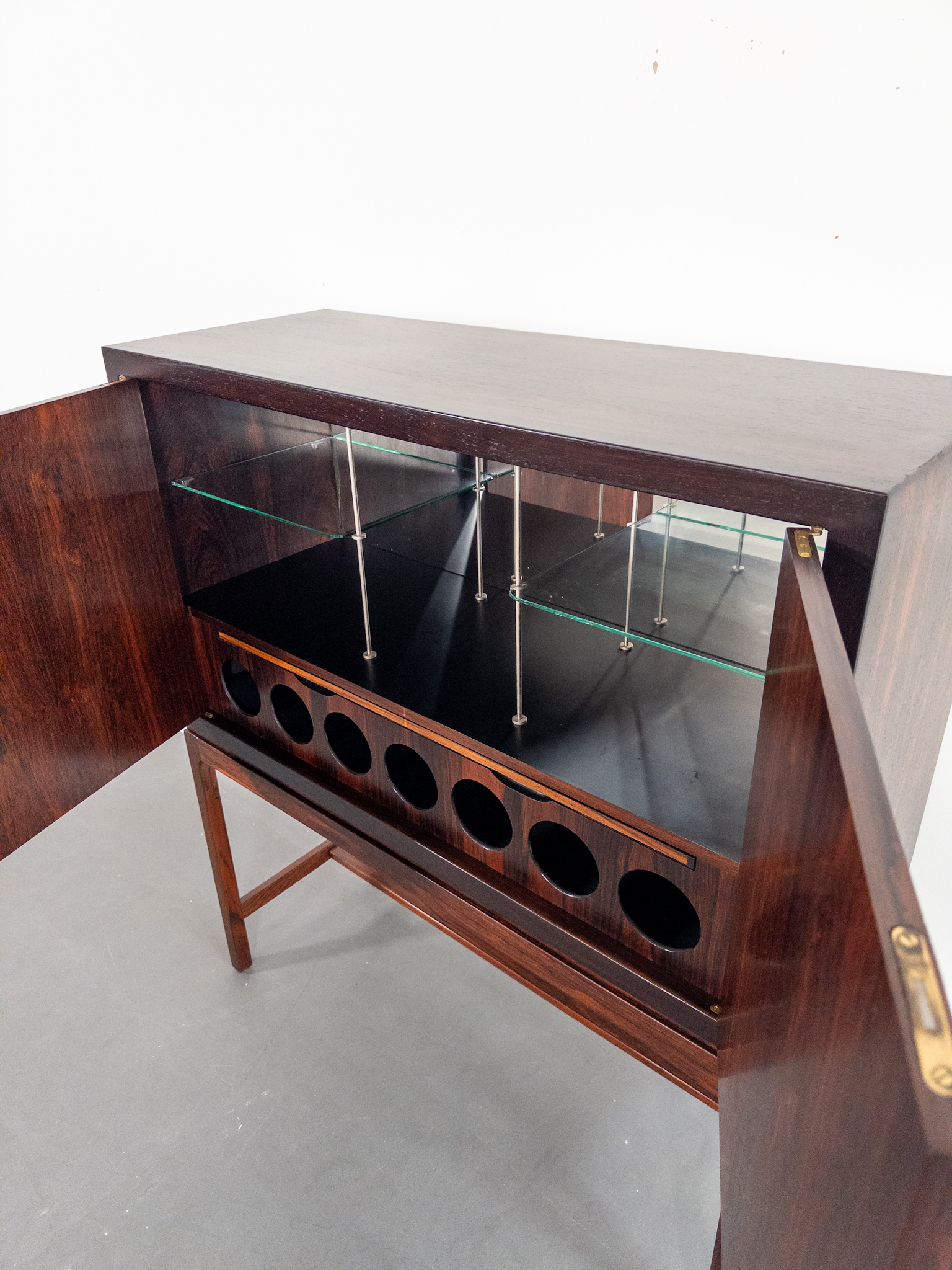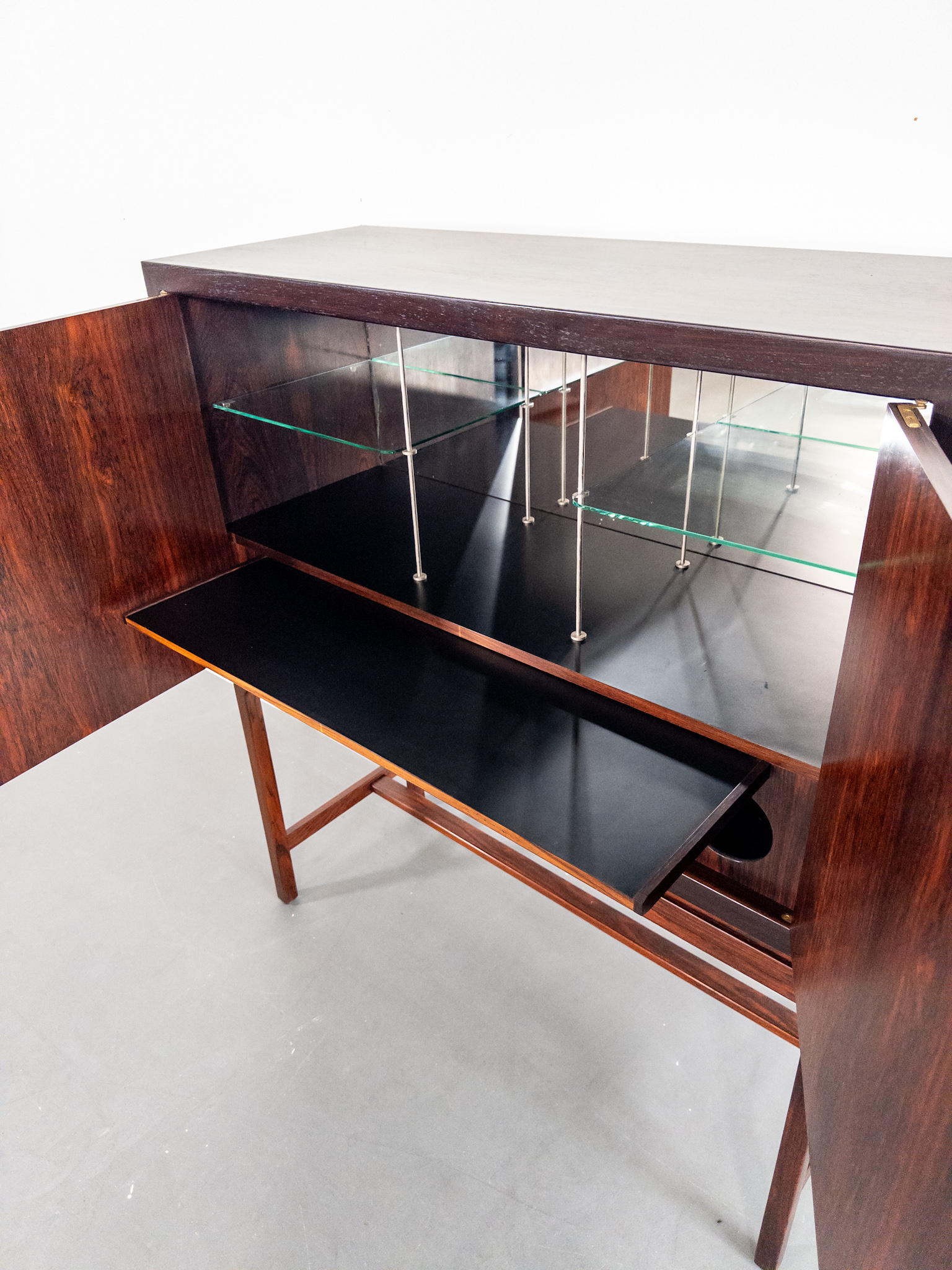 Ett exklusivt barskåp i jakaranda, formgivet av den norska designern Torbjørn Afdal, Norge, en av Nordens mest framstående möbelformgivare under efterkrigstiden.
