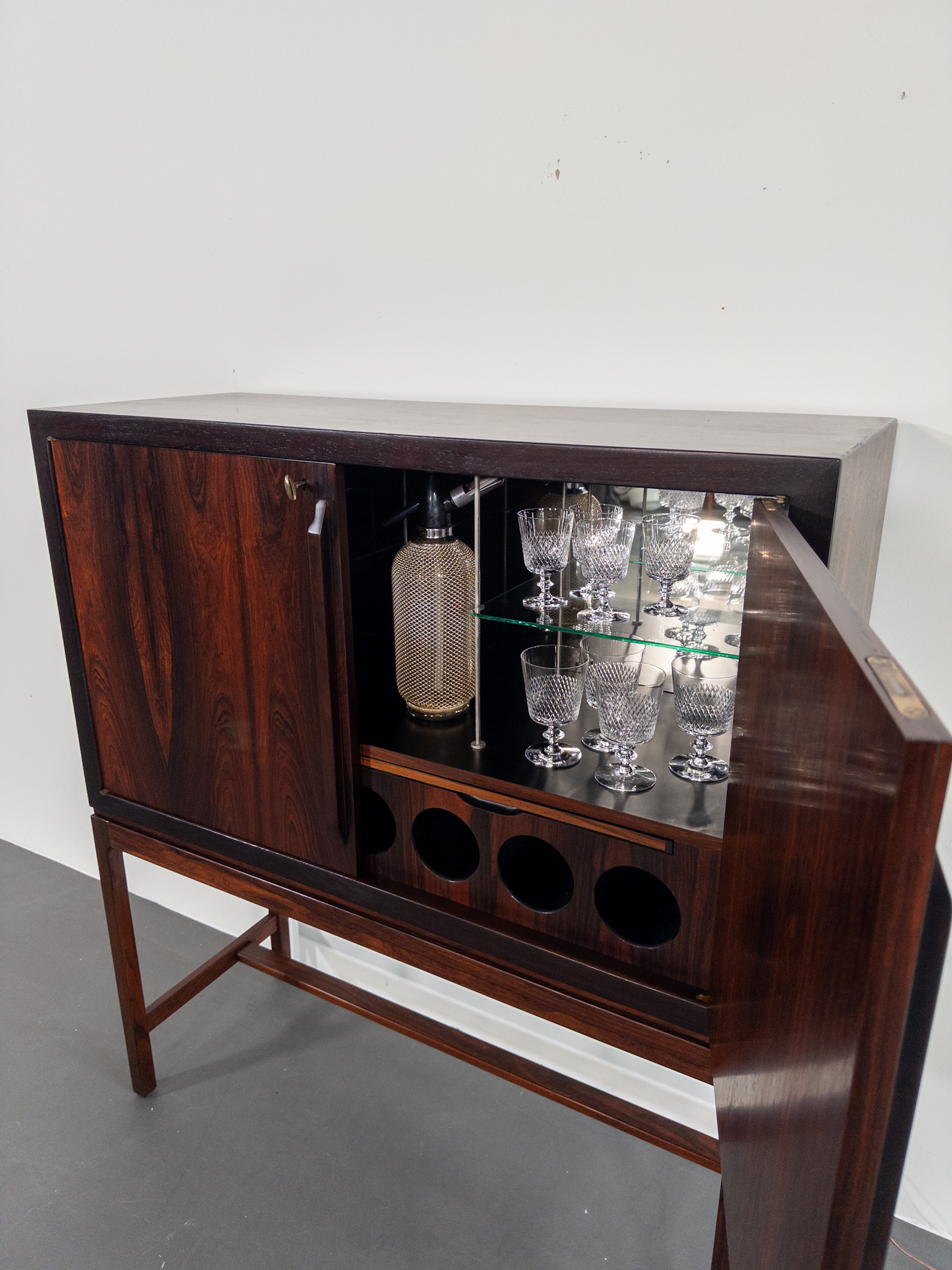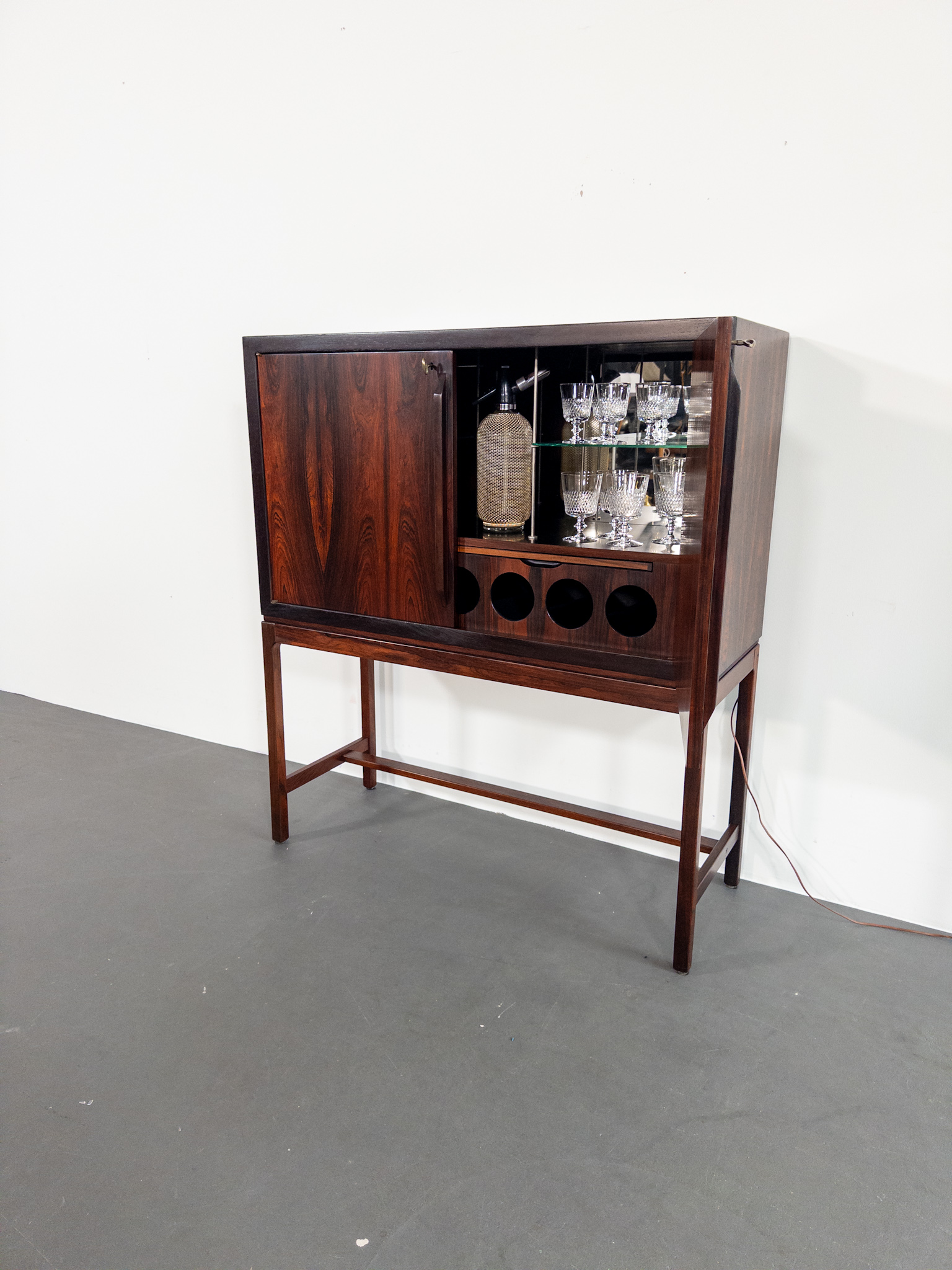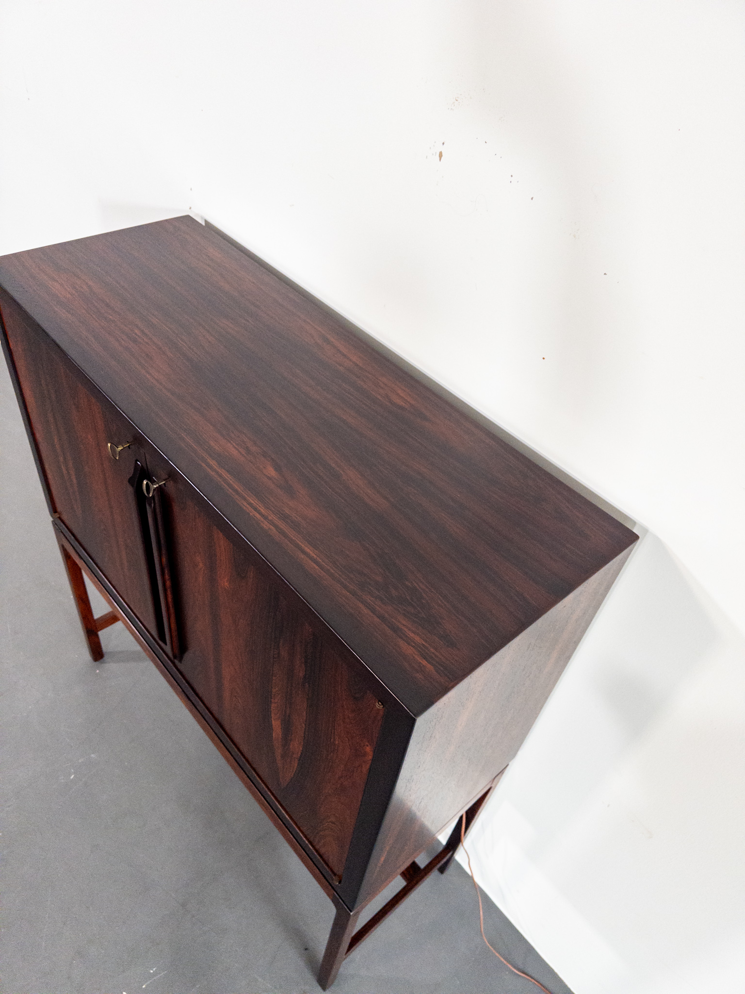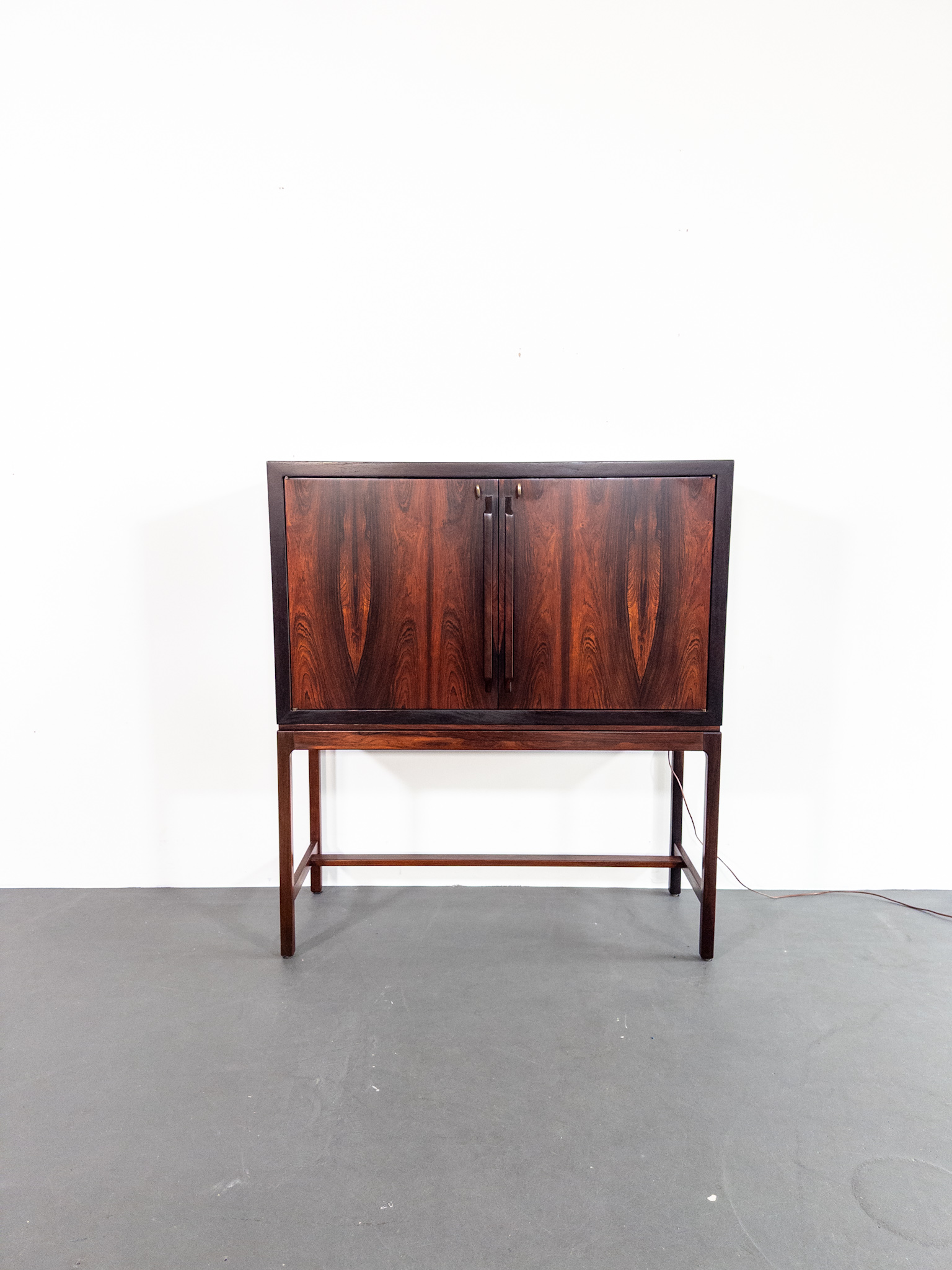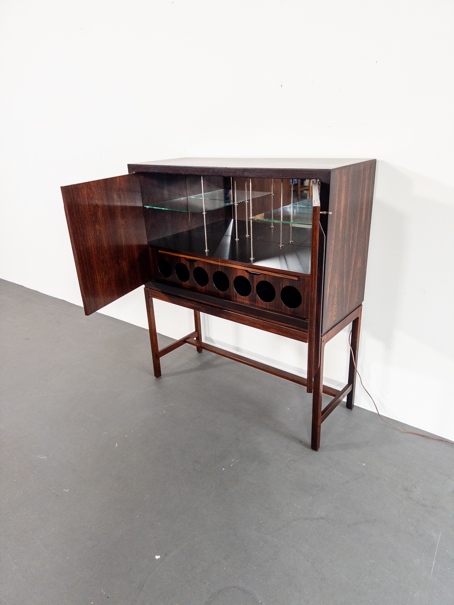 Ett exklusivt barskåp i jakaranda, formgivet av den norska designern Torbjørn Afdal, Norge, en av Nordens mest framstående möbelformgivare under efterkrigstiden.