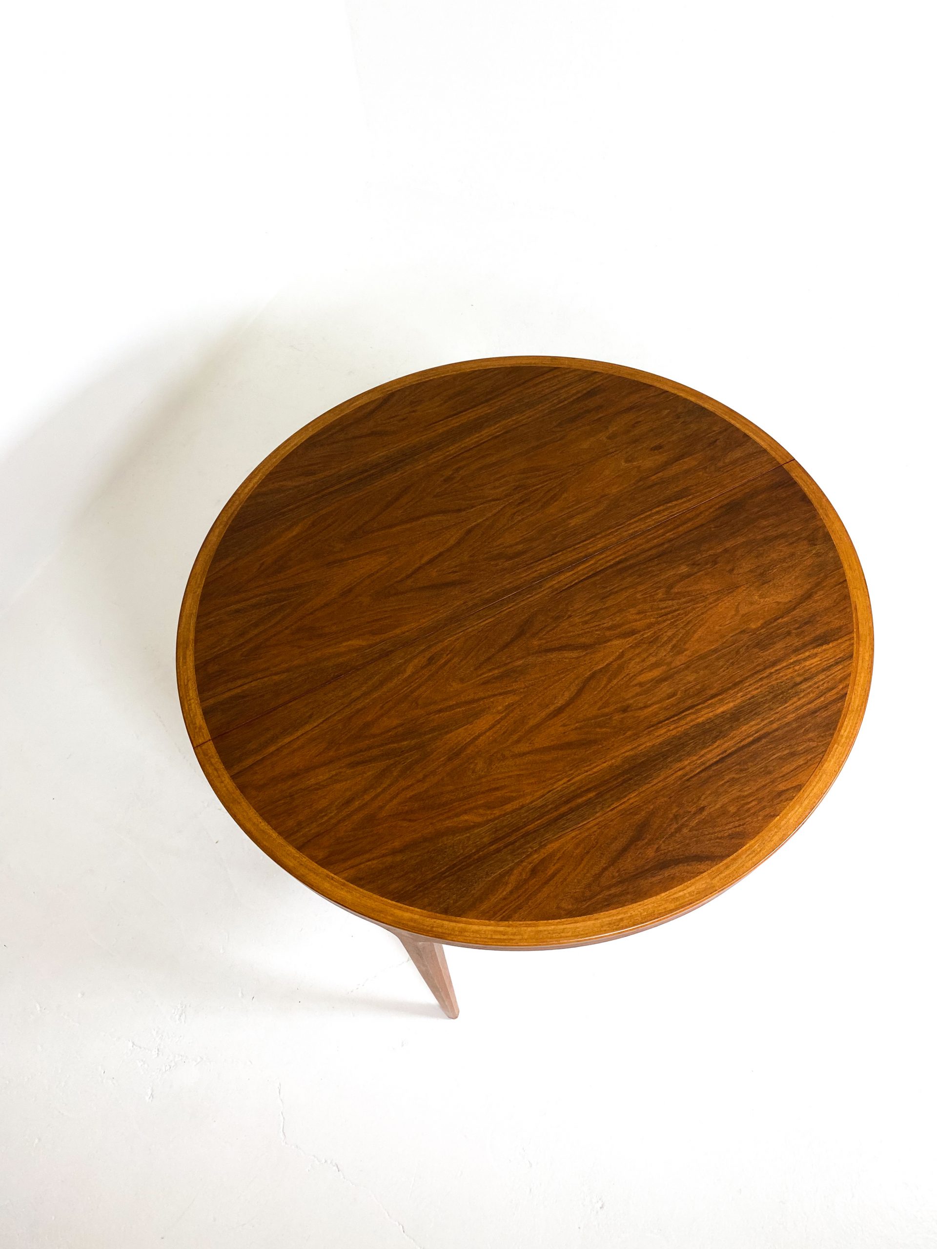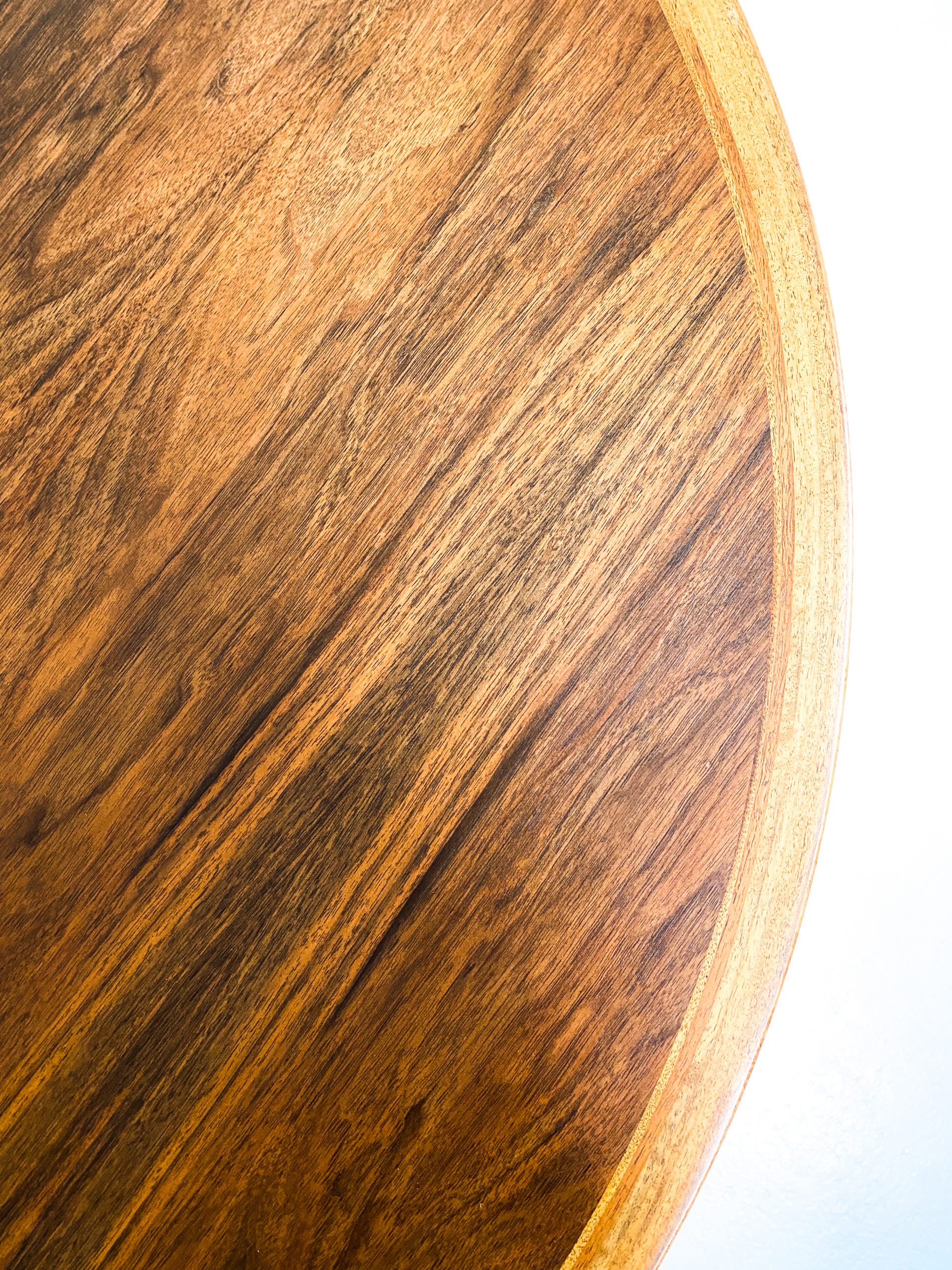 Runt matbord fanerat med teak.