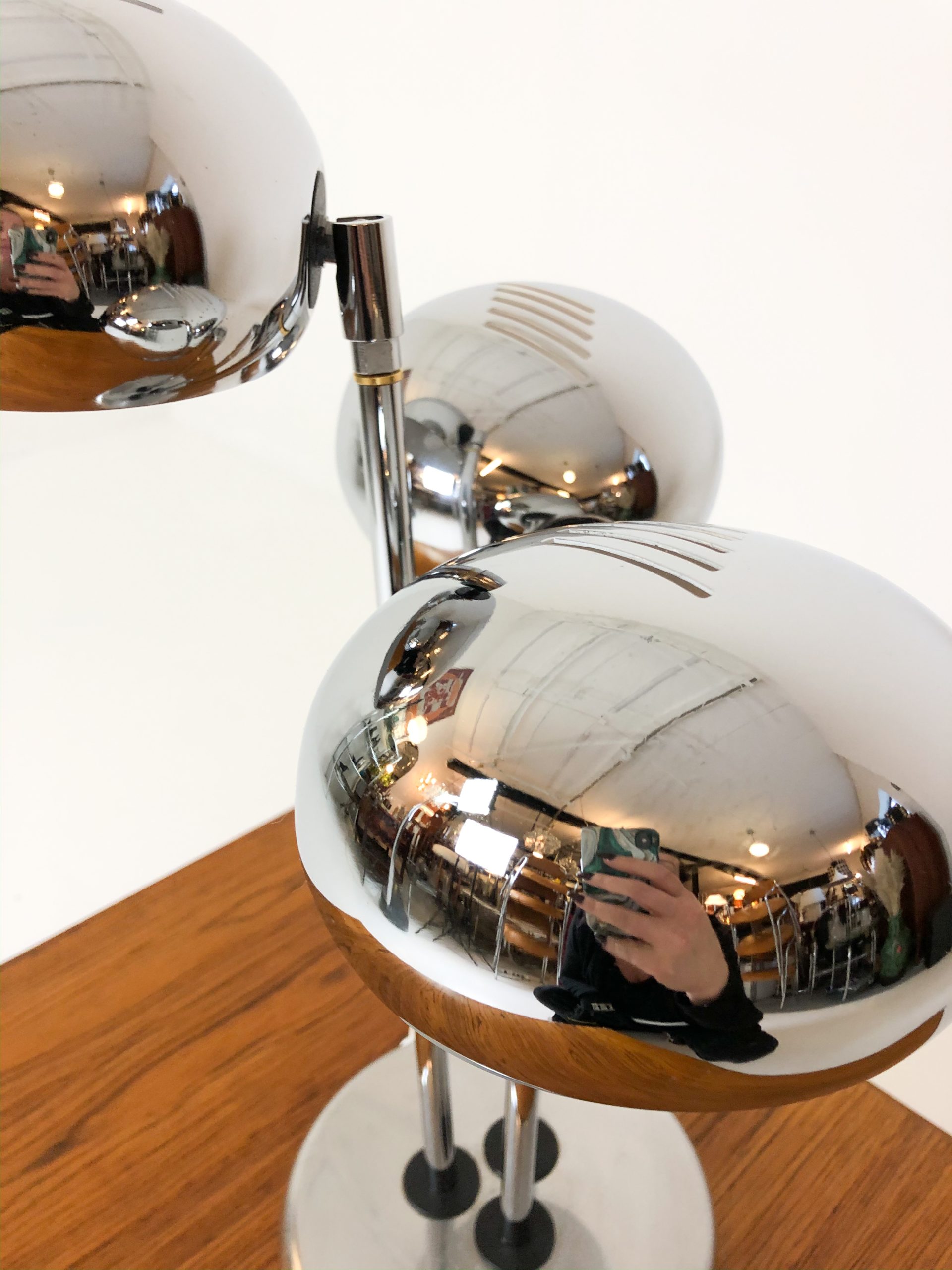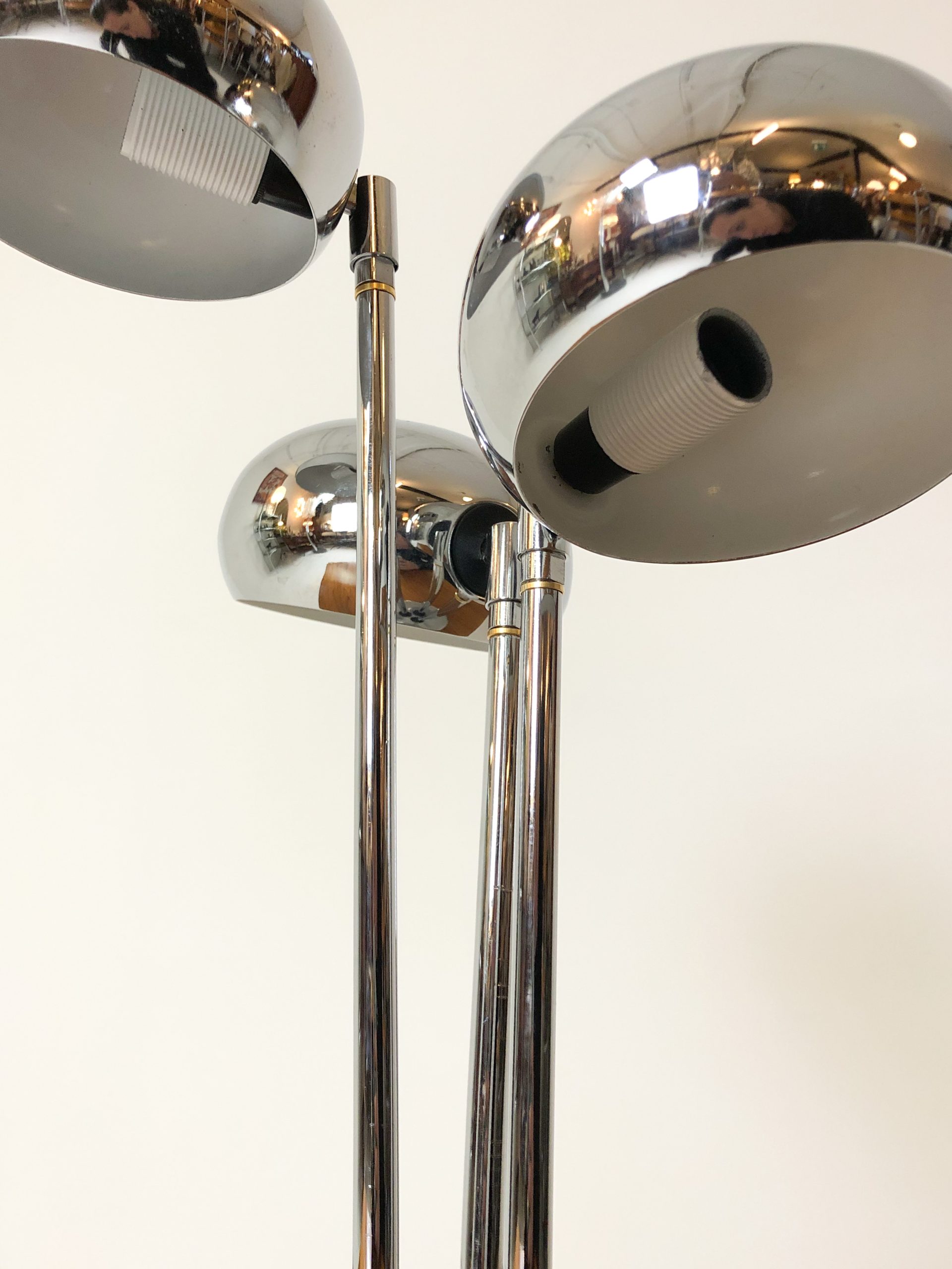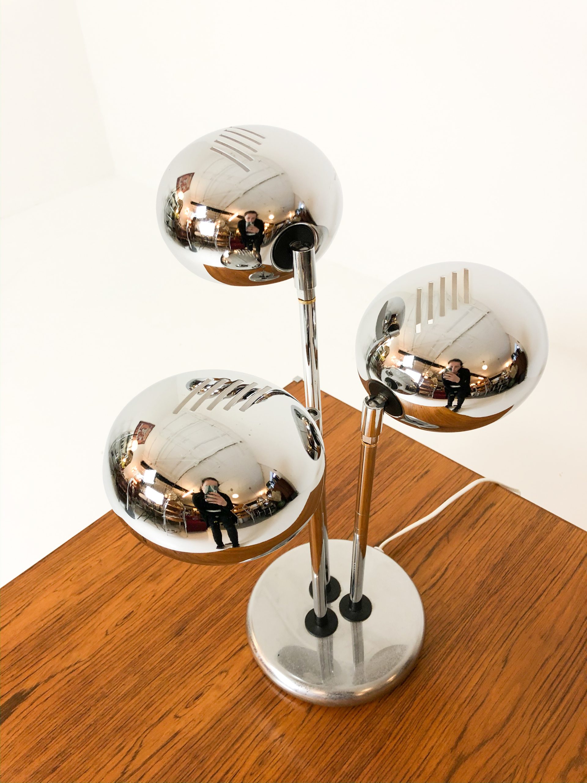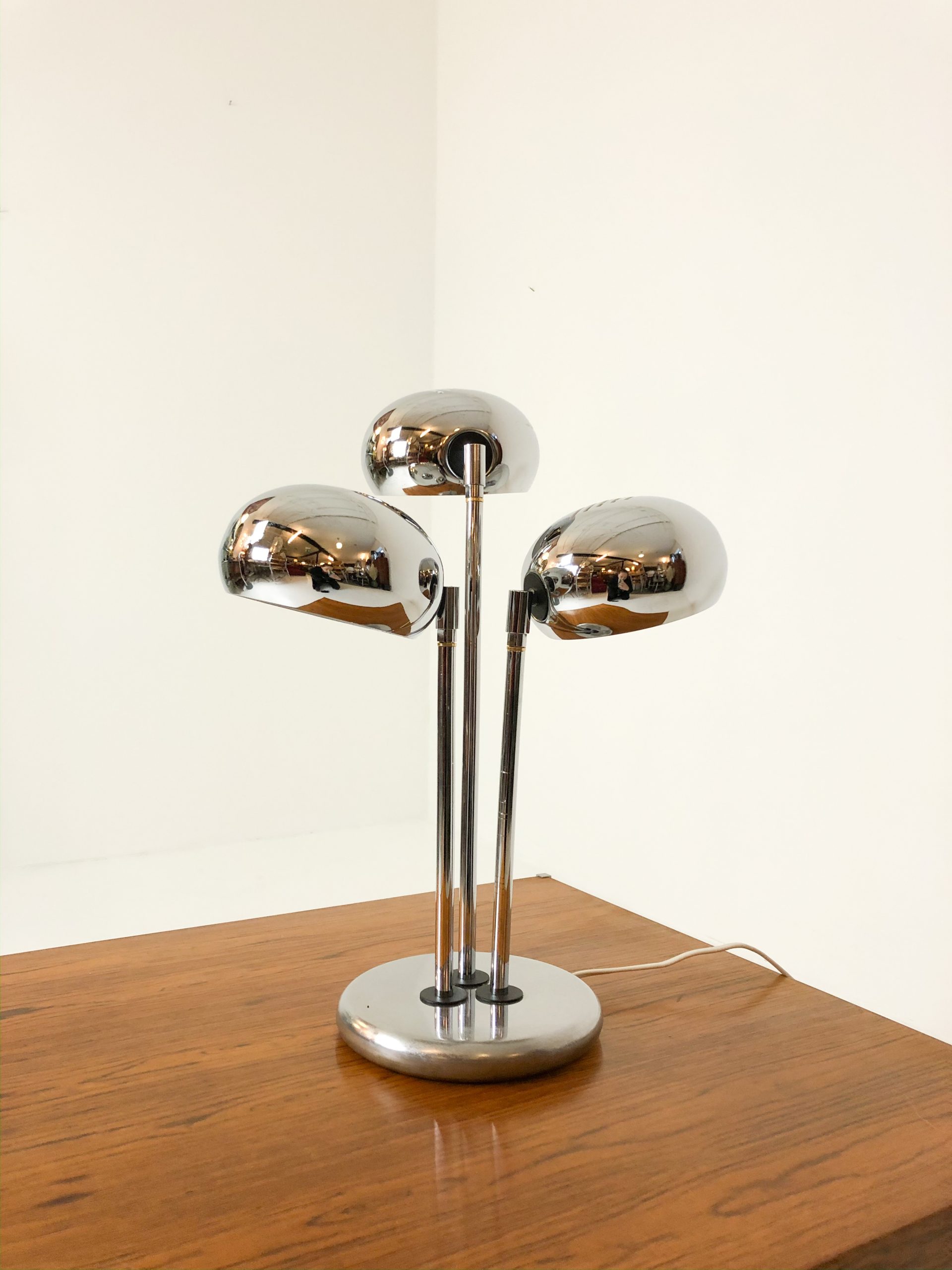 Stilig bordslampa med tre kromade armar.