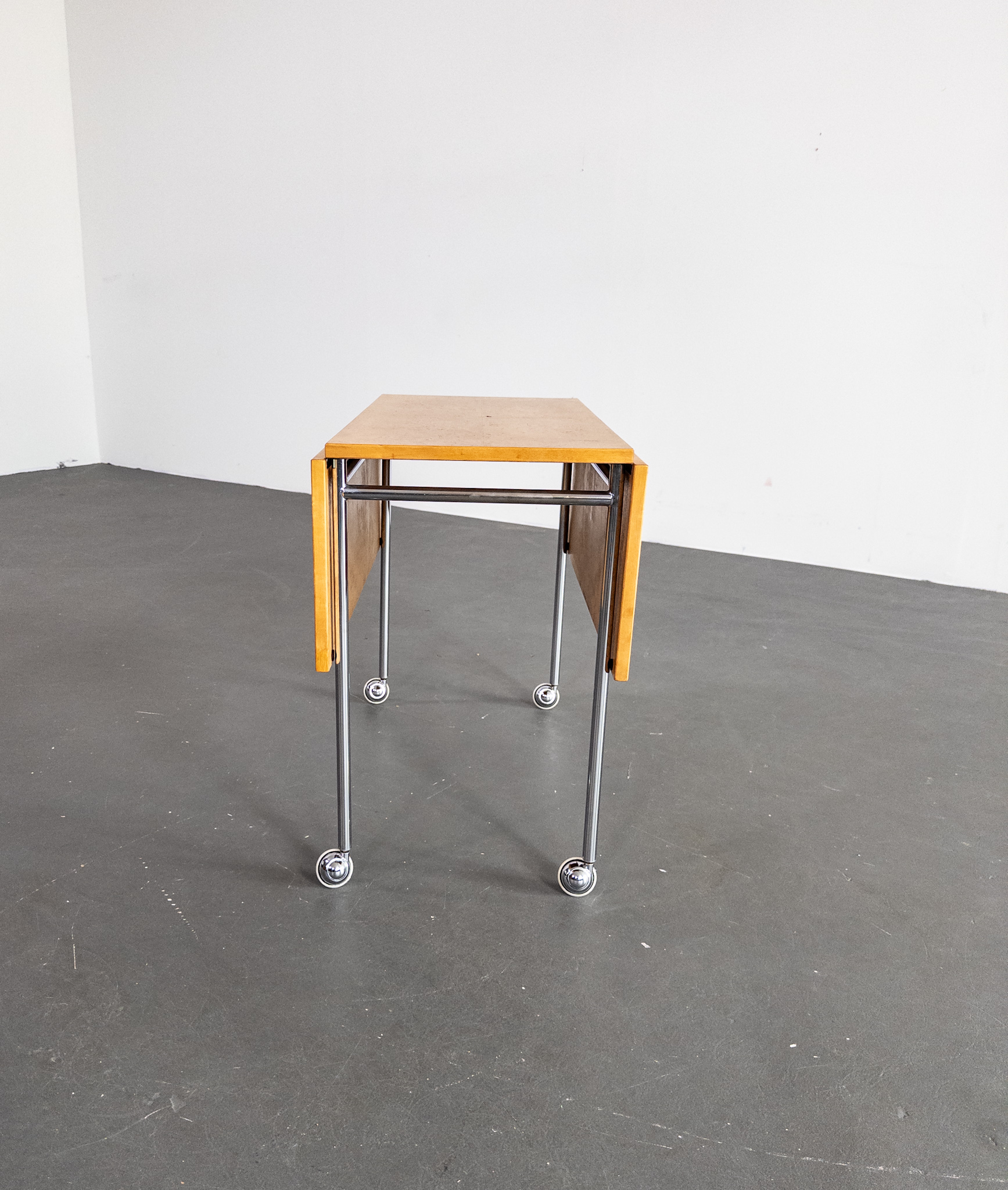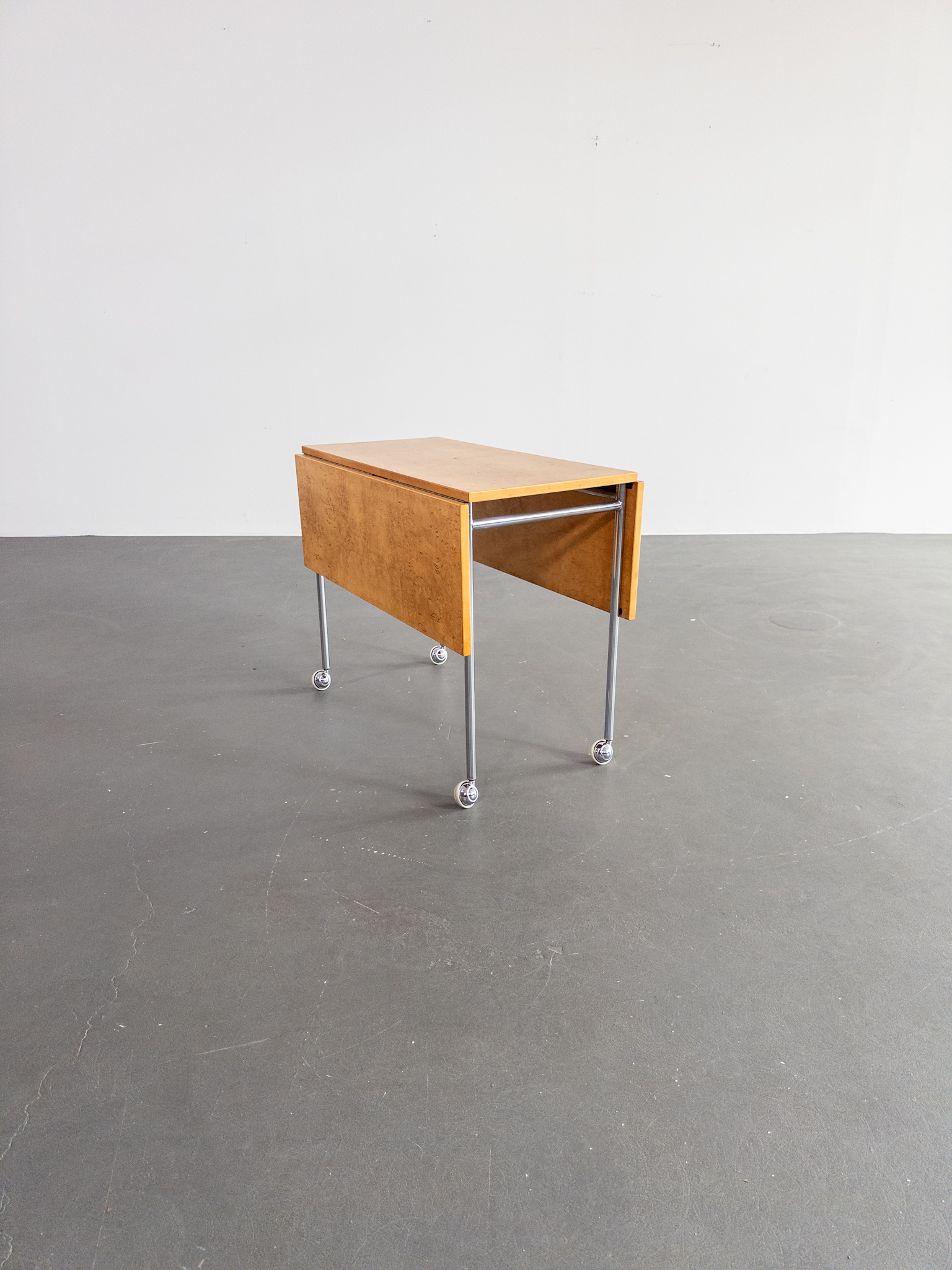 Ett stilrent och funktionellt klaffbord formgivet av den ikoniske Bruno Mathsson. Modellen “Berit” kombinerar skandinavisk enkelhet med smart design och är ett perfekt exempel på Mathssons tidlösa formspråk. Bordet är tillverkat i vacker masurbjörk med kromade ben på hjul – lätt att flytta, enkelt att fälla upp, och fantastiskt att använda både som soffbord, serveringsbord eller i mindre utrymmen där flexibilitet är nyckeln.