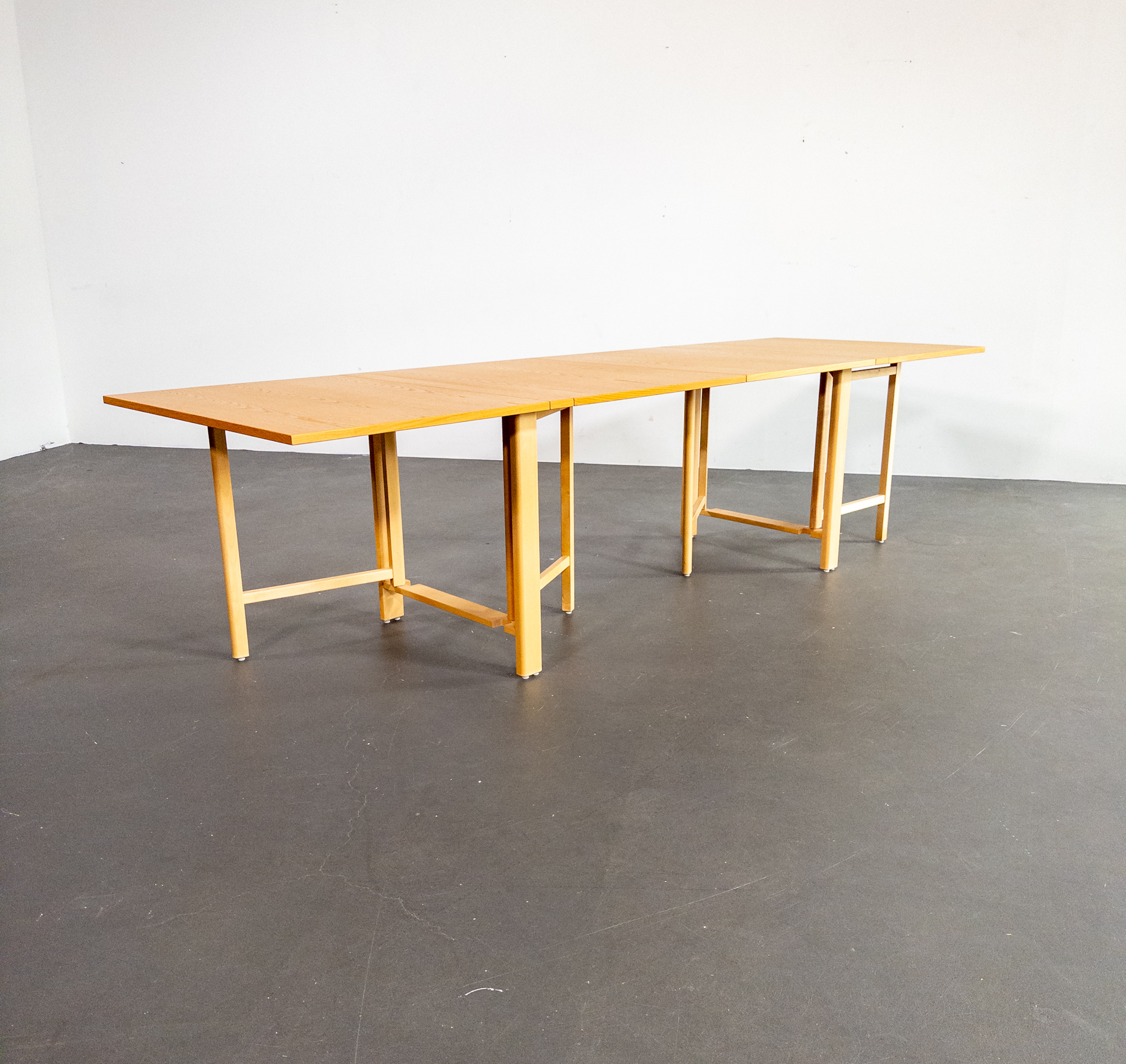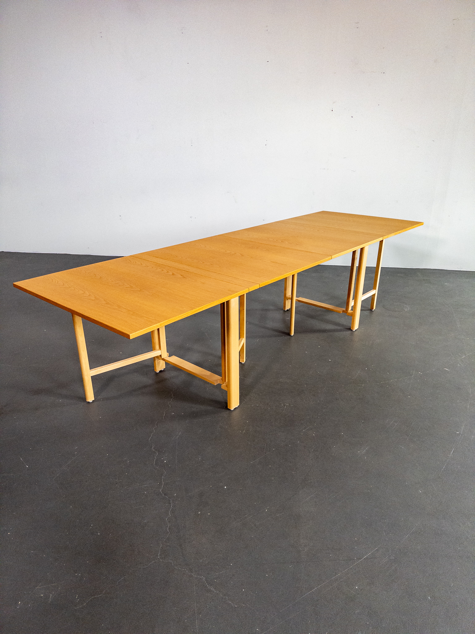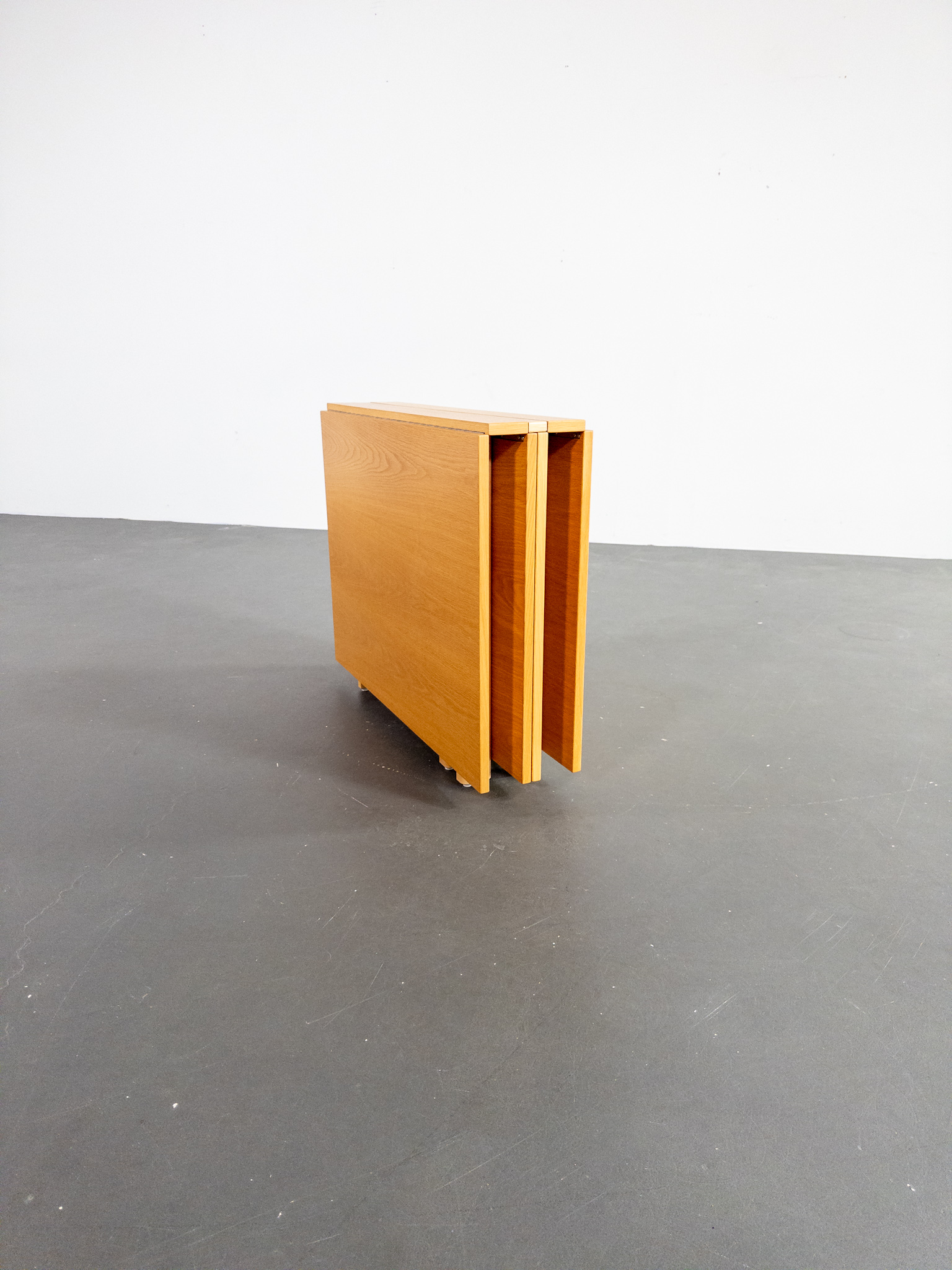 Ett av Bruno Mathssons mest geniala verk – fällbordet Mi 901 – även kallat Maria Flap. Bordet kombinerar maximal funktion med tidlös skandinavisk design och kan justeras från en nätt förvaringsbredd på endast 23 cm till hela 280 cm i utfällt läge. Totalt finns fem olika längder att välja mellan, vilket gör bordet lika praktiskt i vardagen som vid stora middagar.