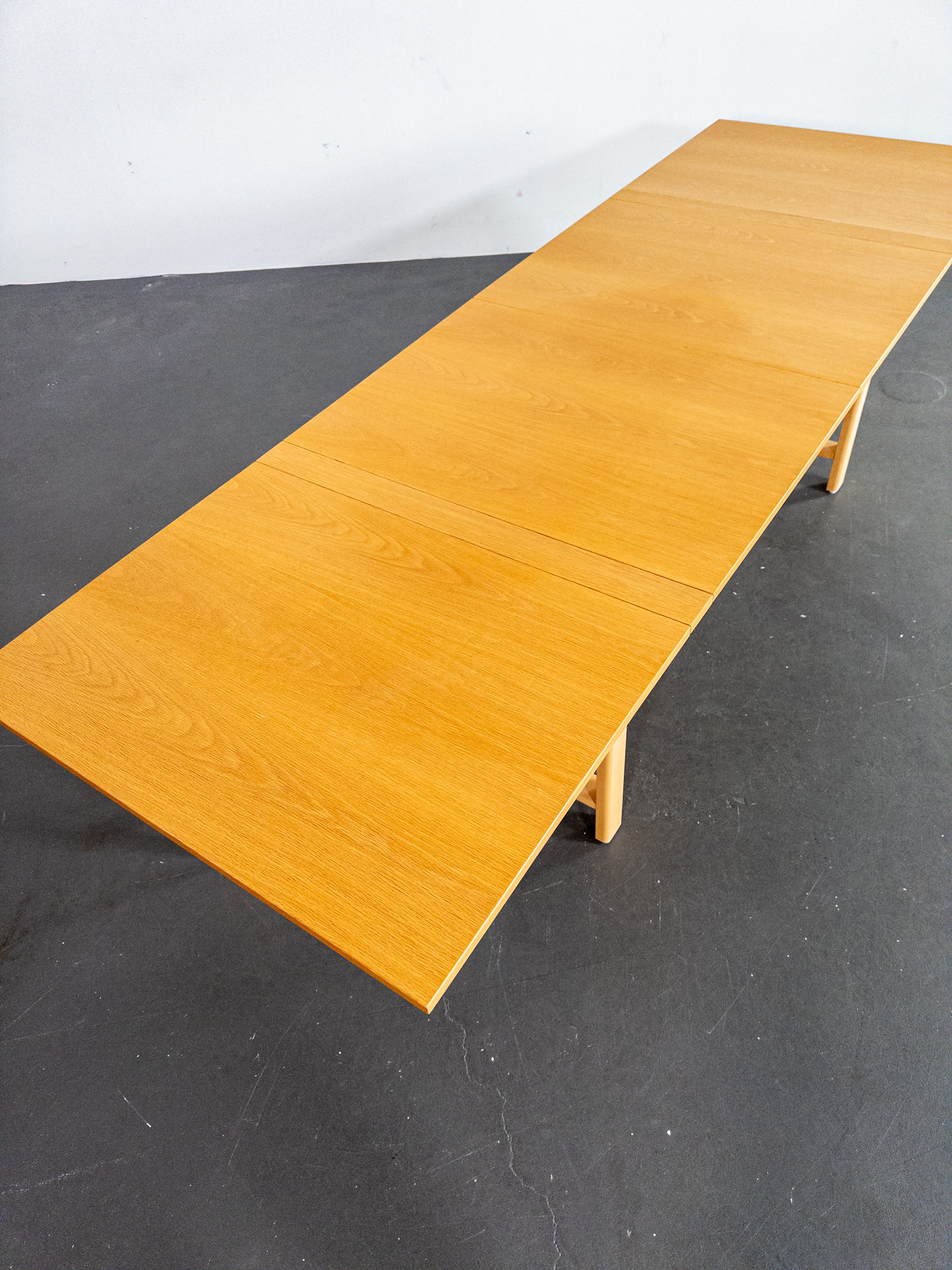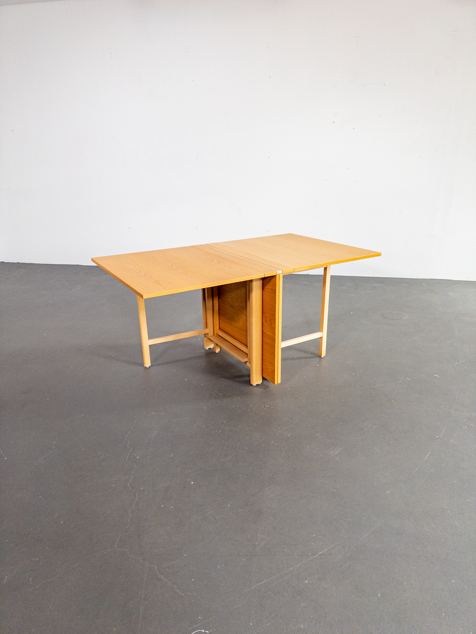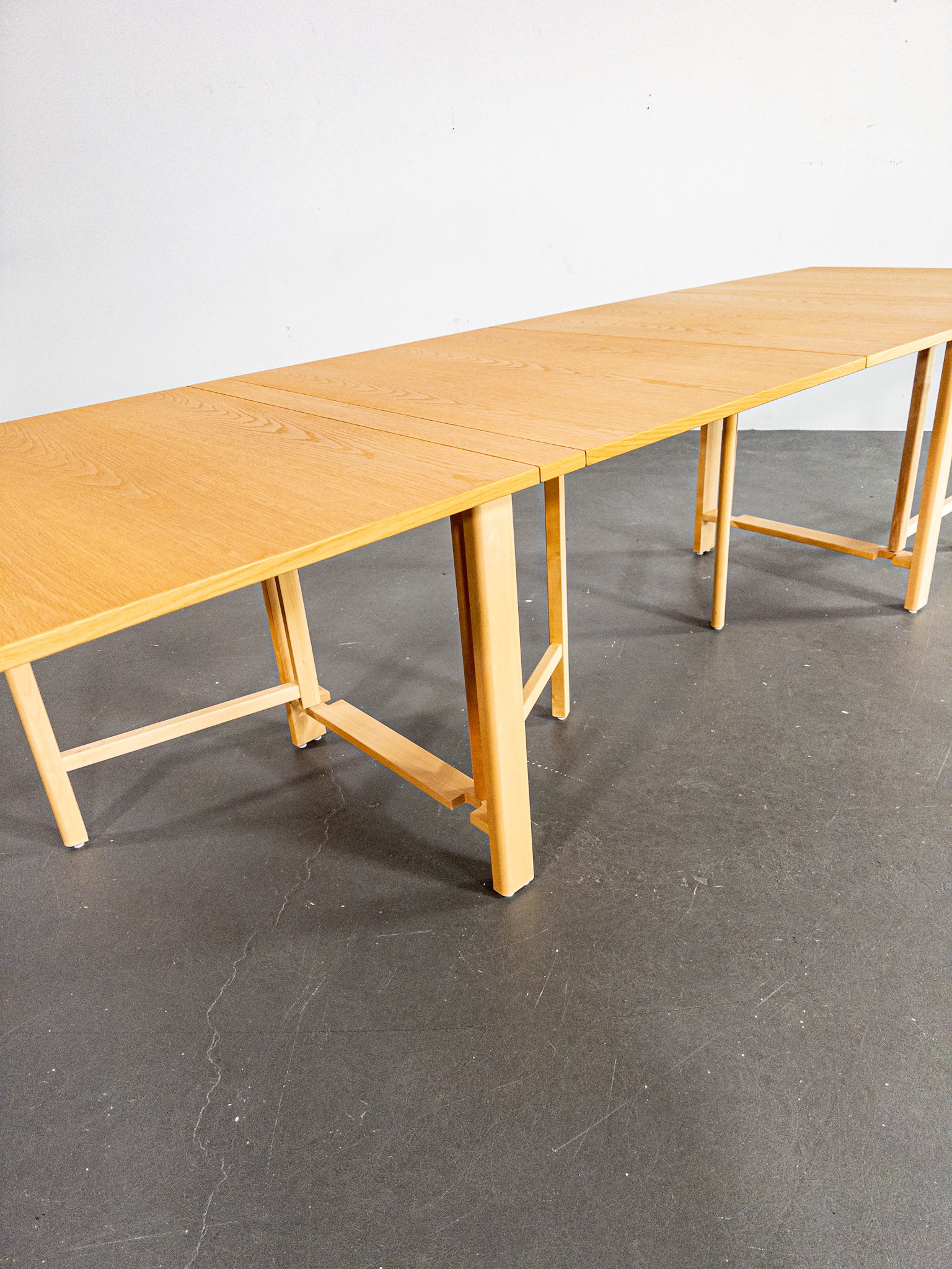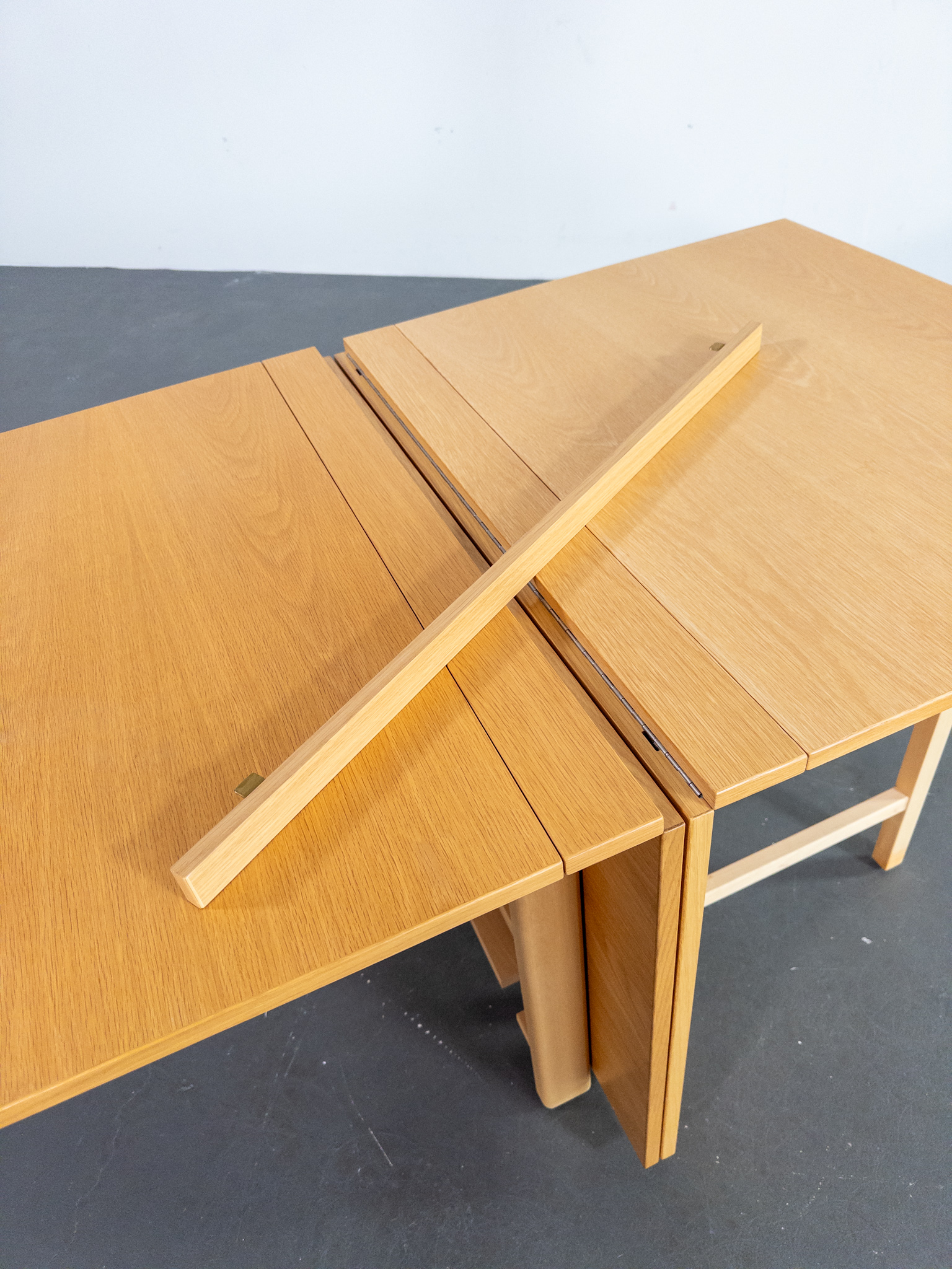 Ett av Bruno Mathssons mest geniala verk – fällbordet Mi 901 – även kallat Maria Flap. Bordet kombinerar maximal funktion med tidlös skandinavisk design och kan justeras från en nätt förvaringsbredd på endast 23 cm till hela 280 cm i utfällt läge. Totalt finns fem olika längder att välja mellan, vilket gör bordet lika praktiskt i vardagen som vid stora middagar.