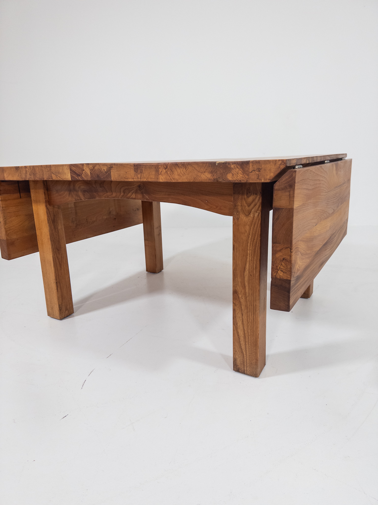 Ett ovanligt och karaktärsfullt matbord i massiv alm, designat av Carl Axel Beijbom, Naturbord.
