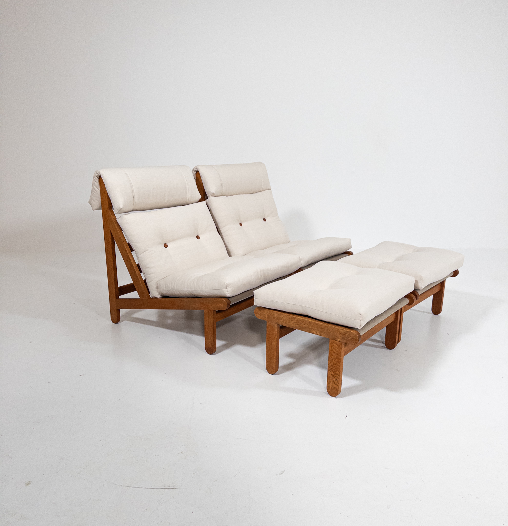En ikon från den danska modernismen där komfort och enkelhet möts på det där självklara sättet. De generösa, lösa dynorna ger ett avslappnat uttryck medan den synliga ekstommen ramar in formen med värme och stabilitet.