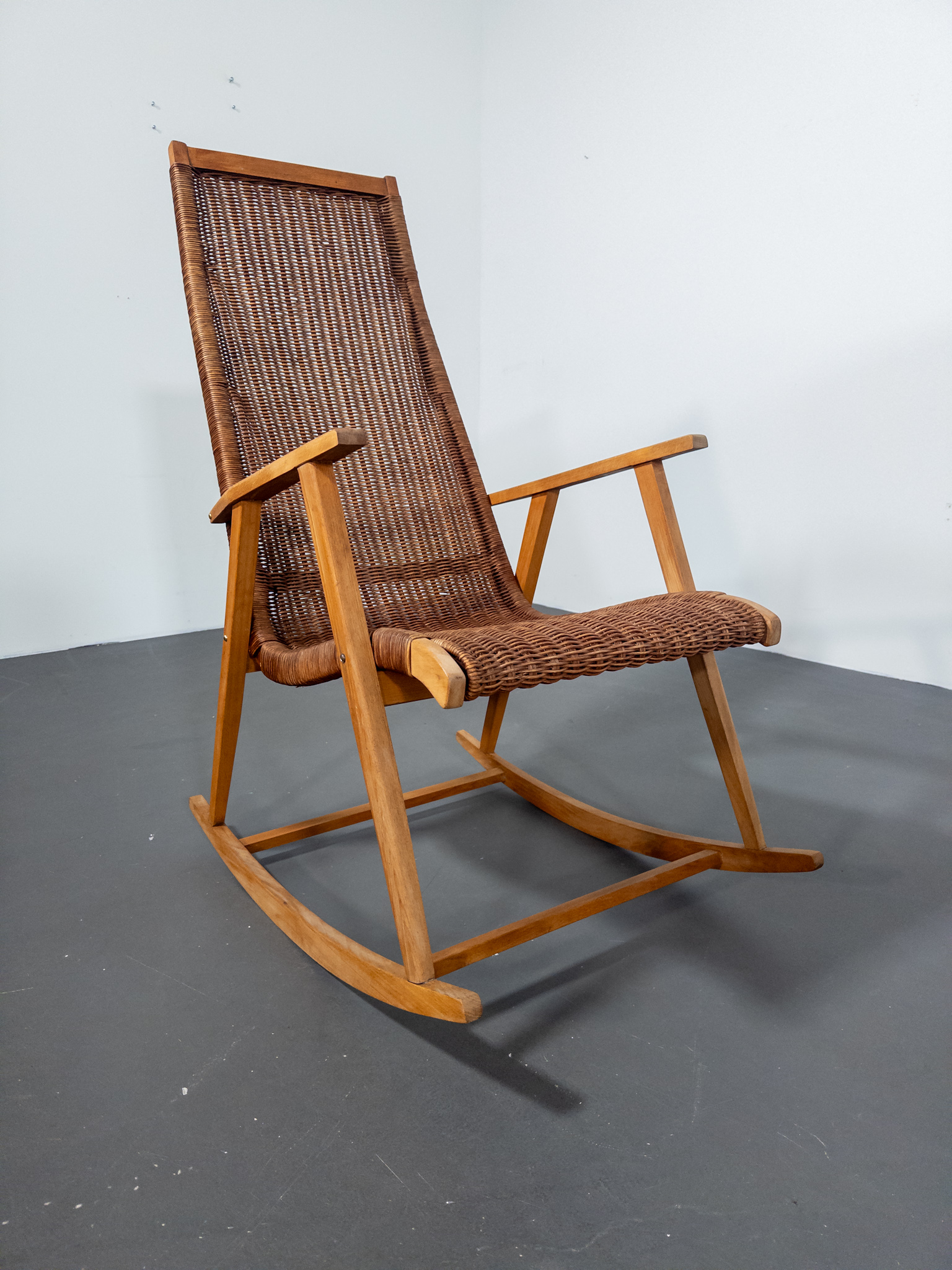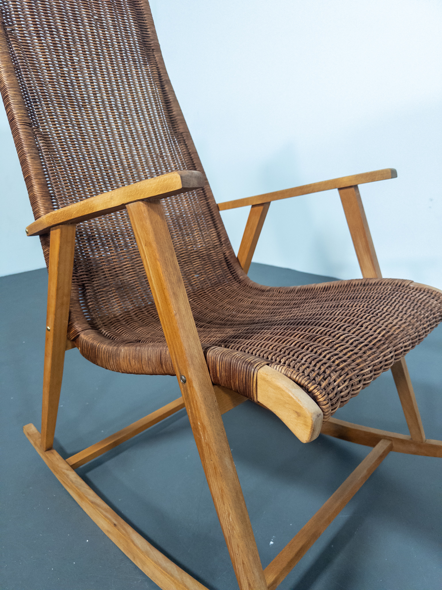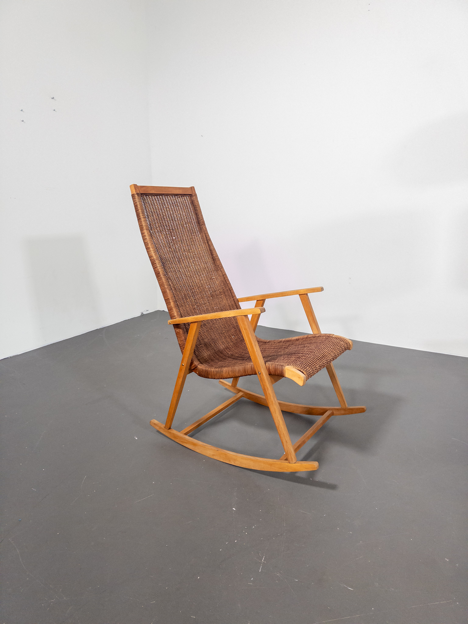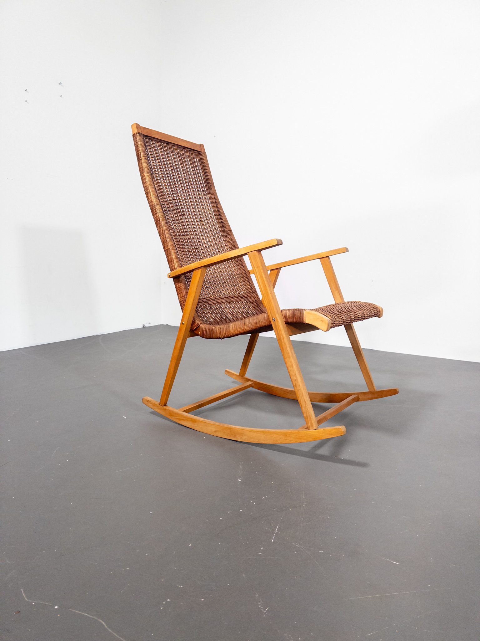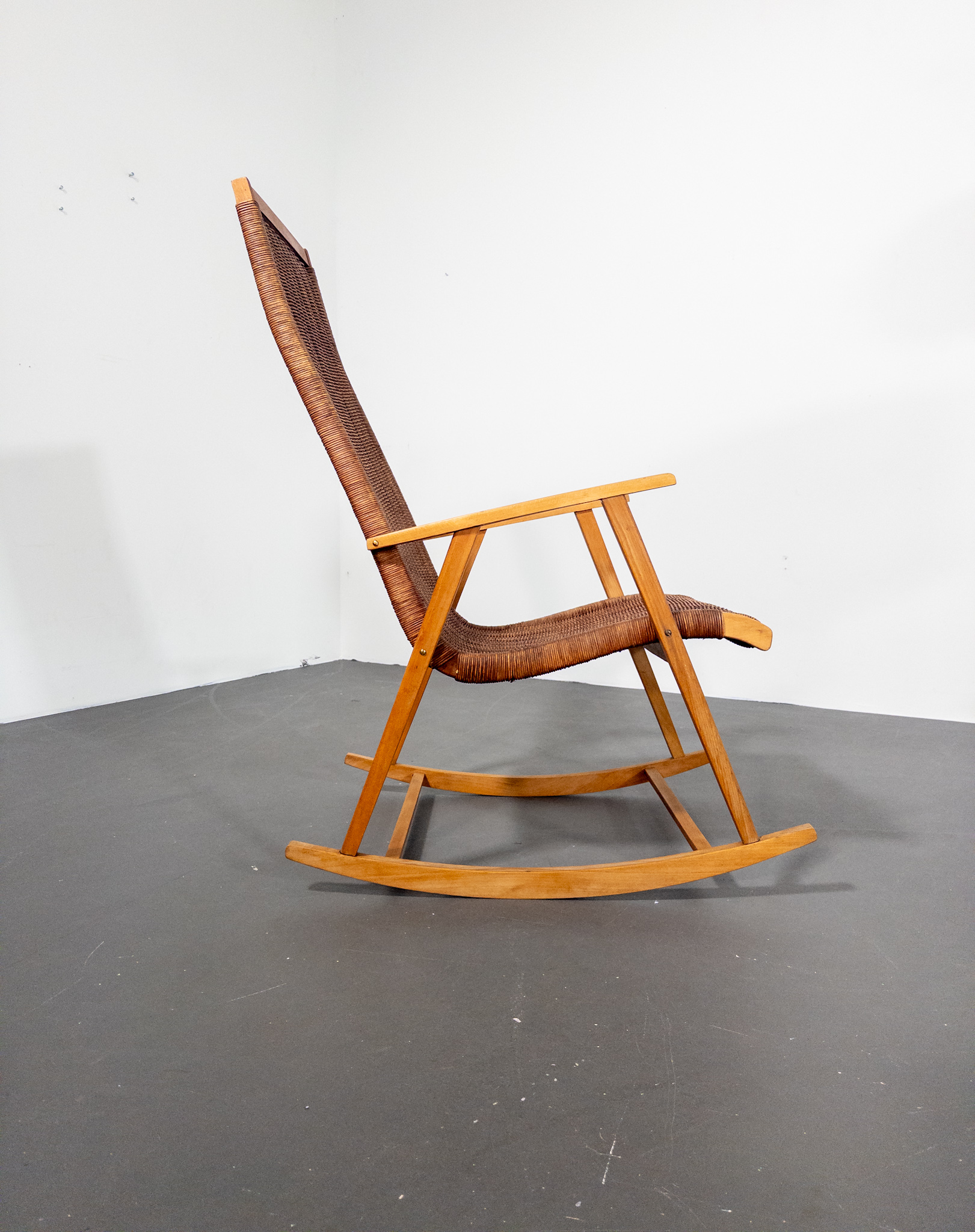 Elegant gungstol från ca 1960, utförd av Deutsche Werkstätten Dresden-Hellerau.