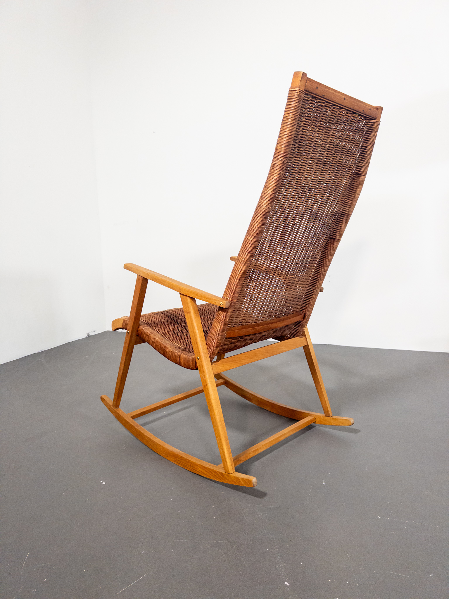 Stommen är tillverkad i massiv bok och sits samt rygg är vackert handflätade i rotting. Den höga, lätt koniska ryggen ger ett bekvämt stöd och den generösa sittytan gör stolen till en tidlös kombination av komfort och design.