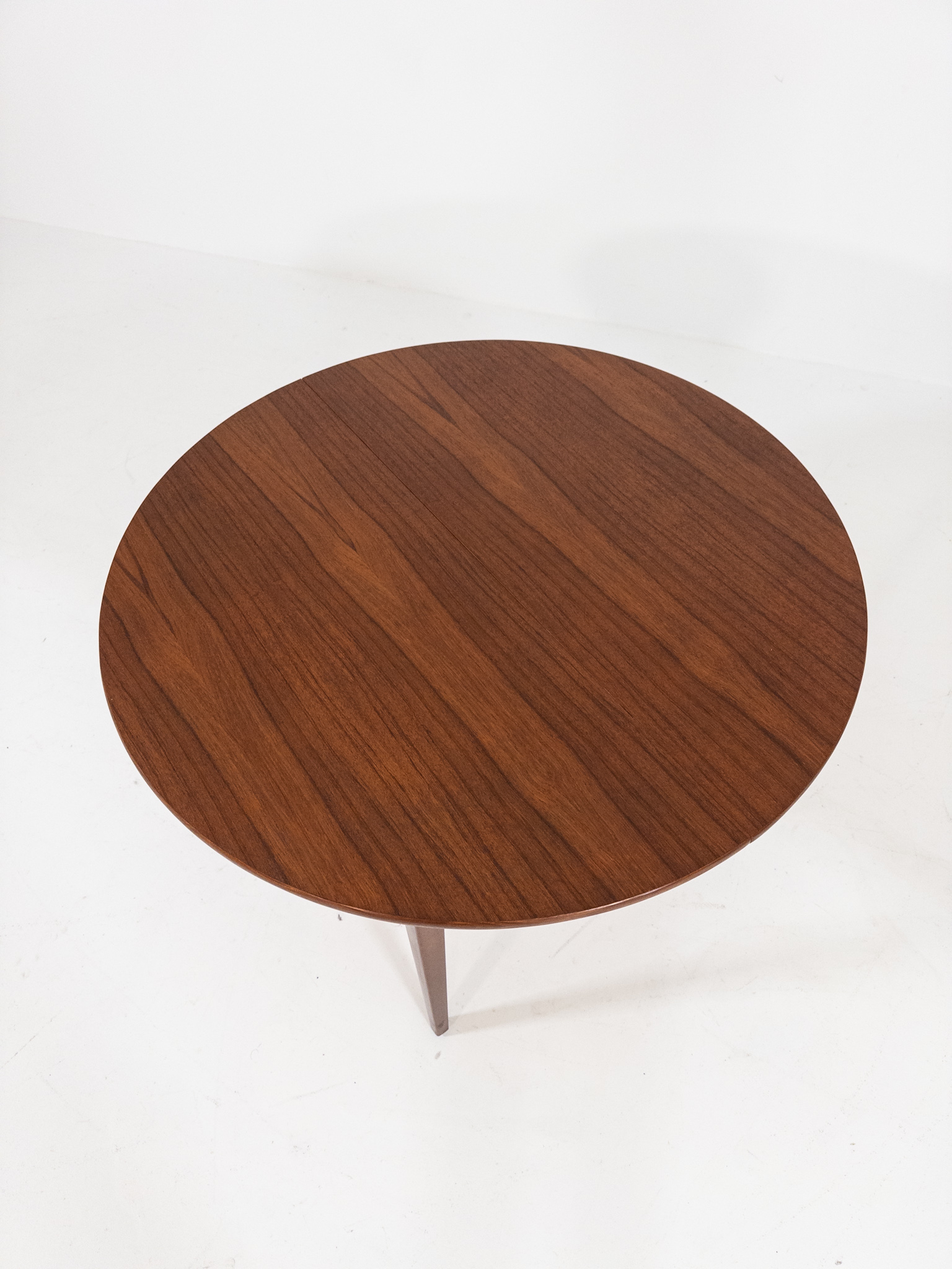 Den klassiska runda formen gör bordet lättplacerat och socialt, samtidigt som iläggsskivan smidigt förvandlar det till ett mer generöst middagsbord när behovet finns.