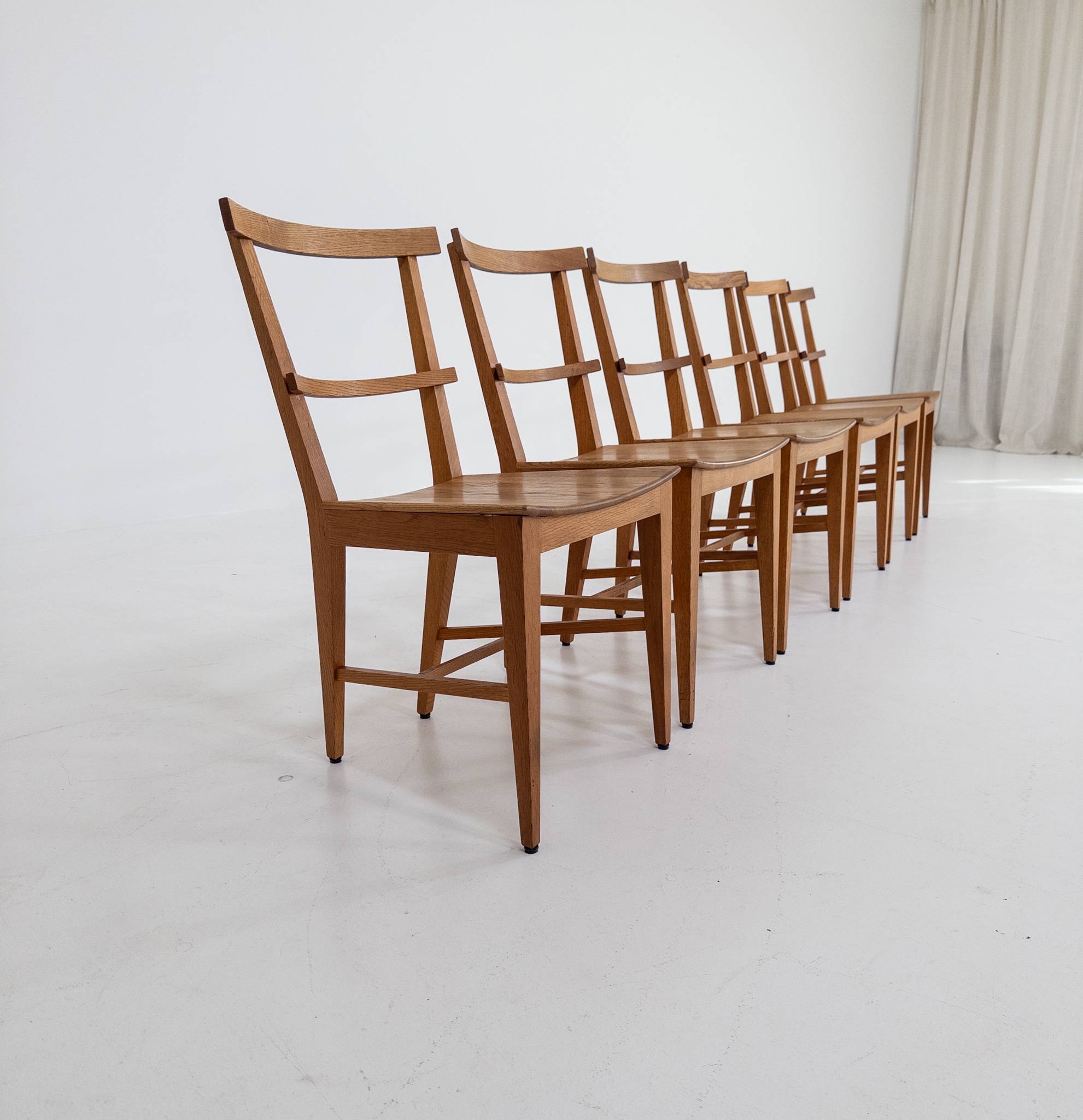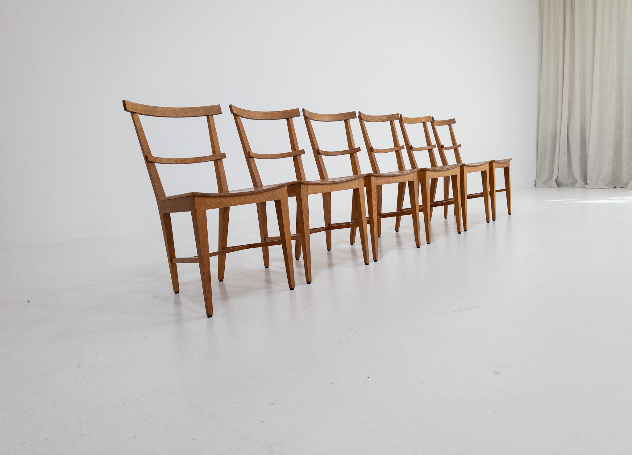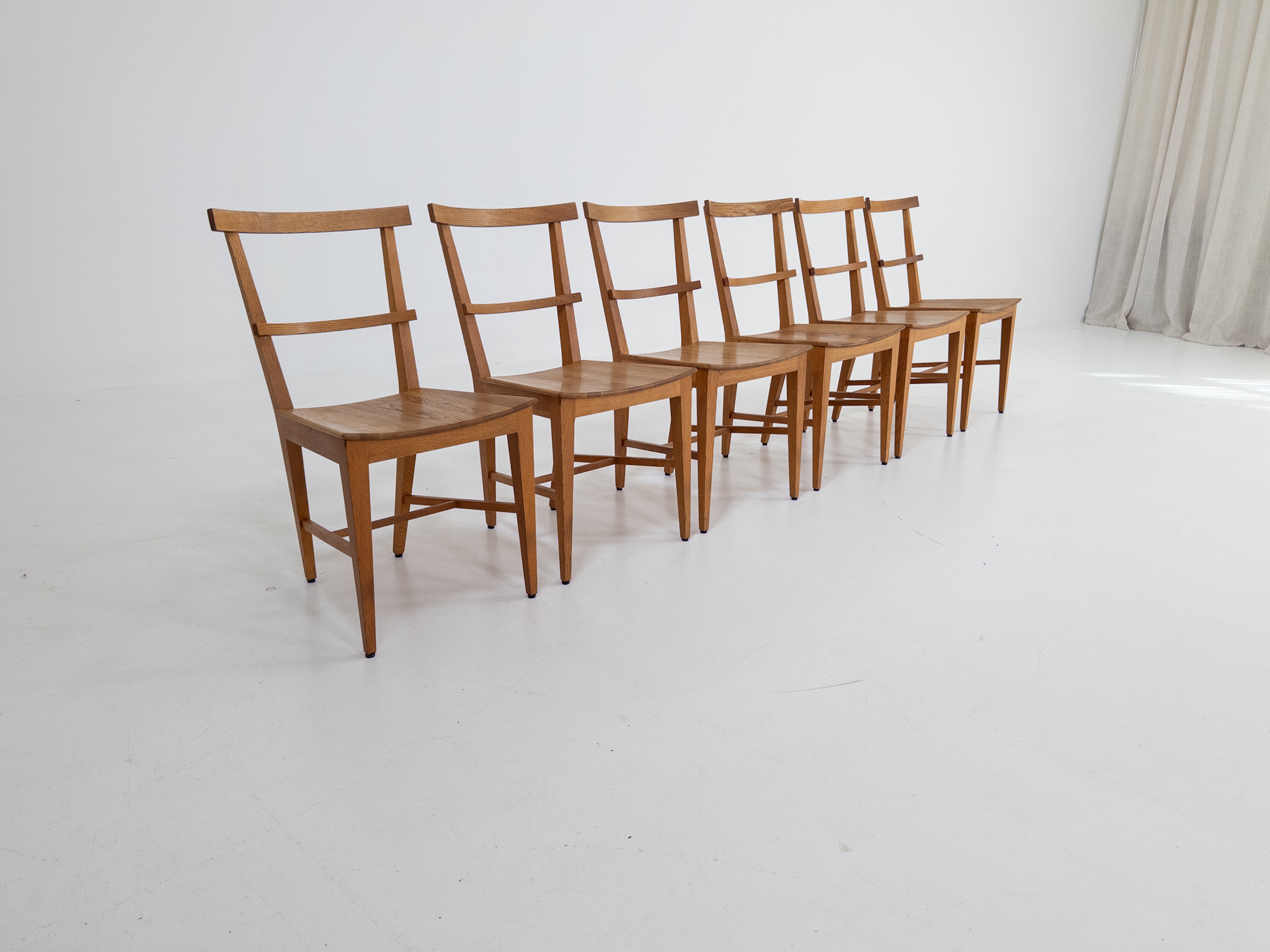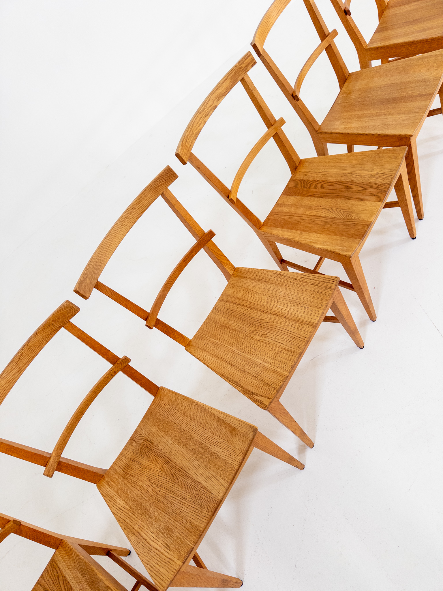 Tillverkade i massiv ek med en vacker, varm ton och tydlig ådring som ger varje stol liv och karaktär.