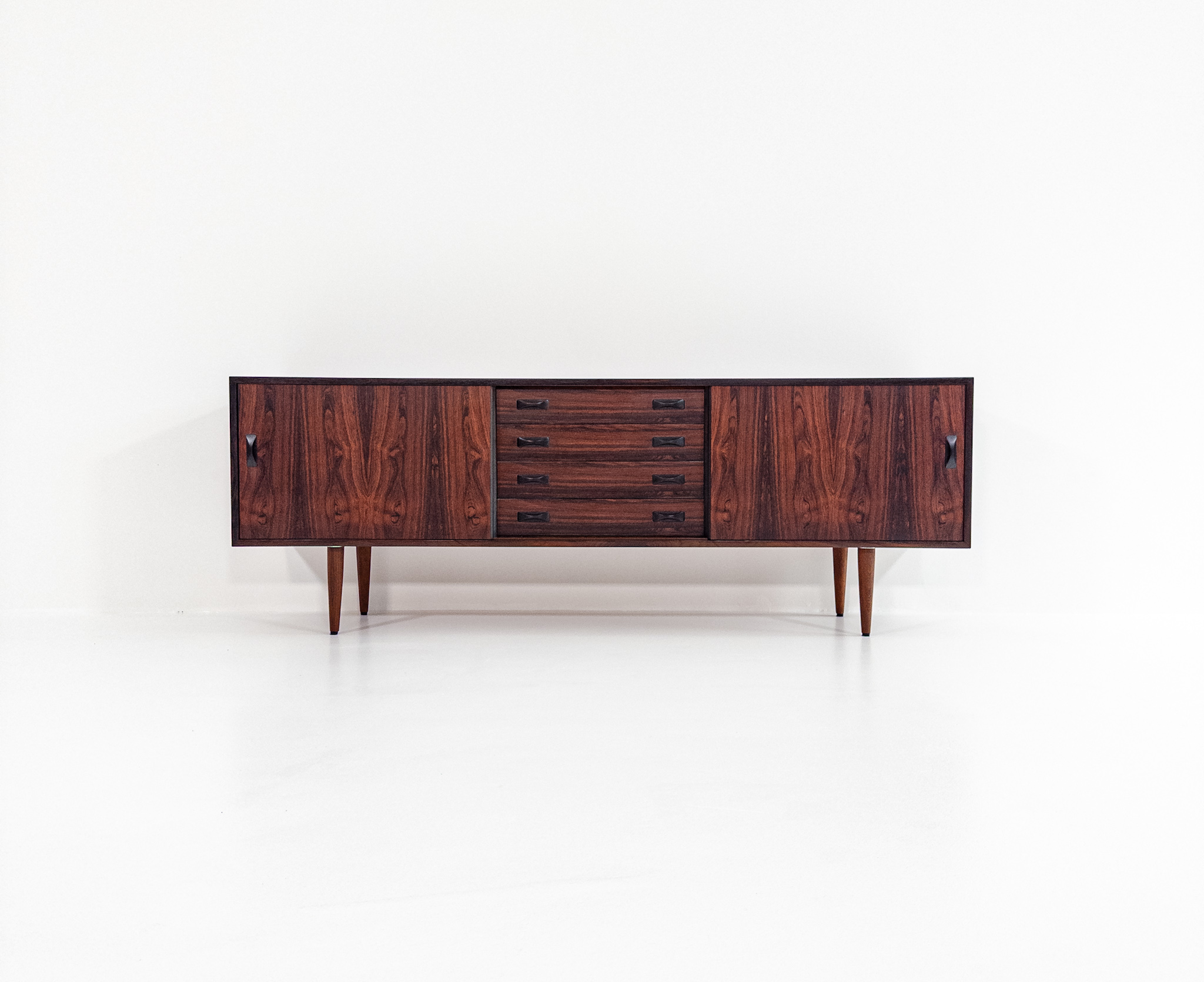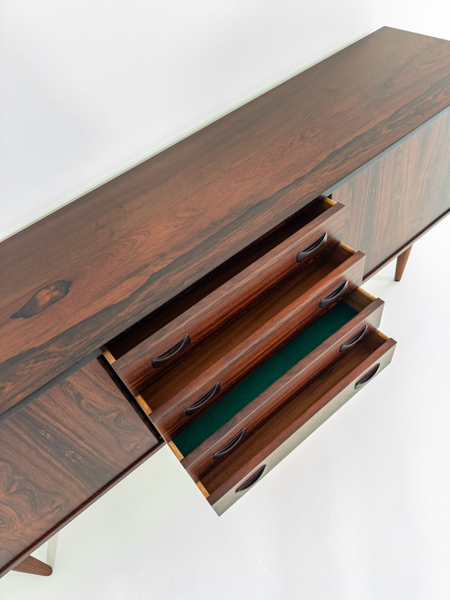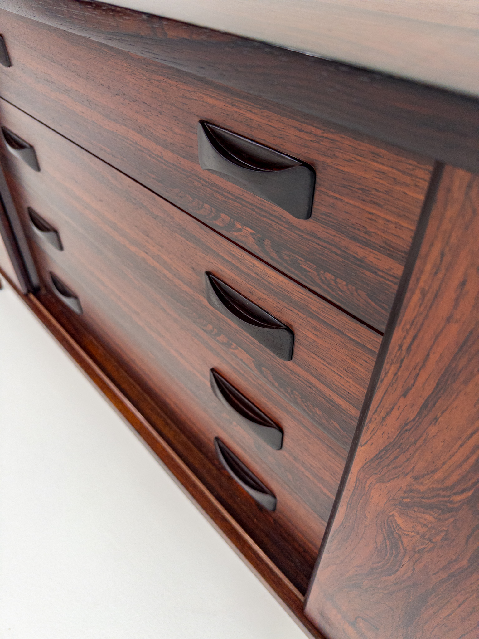 Exklusivt danskt sideboard i Santos Rosewood (Jakaranda) från 60-talet, tillverkat av Clausen & Søn, Silkeborg.