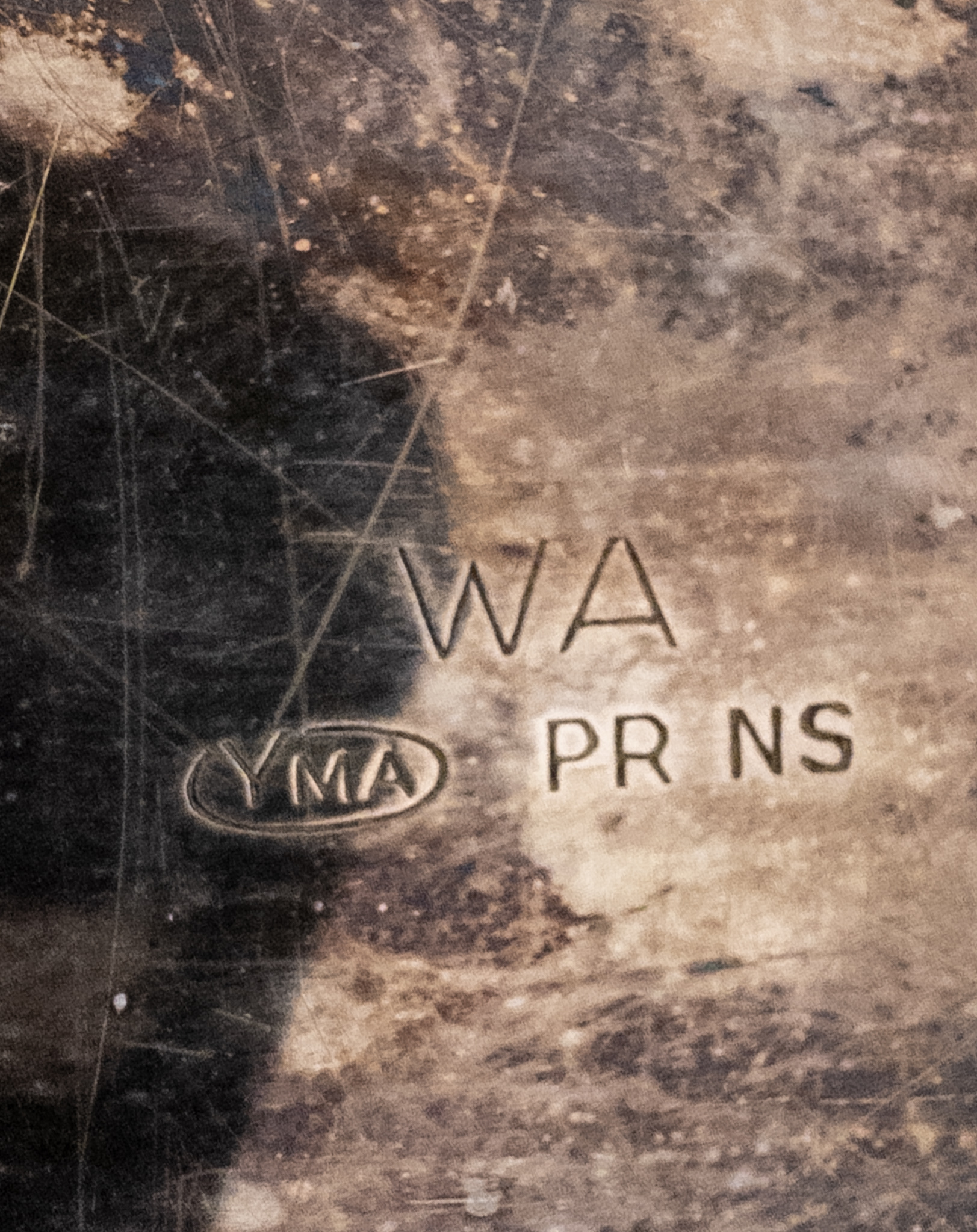 Utförd i silverpläterat nysilver (PR NS) och märkt med Ystad Metalls stämpel YMA.