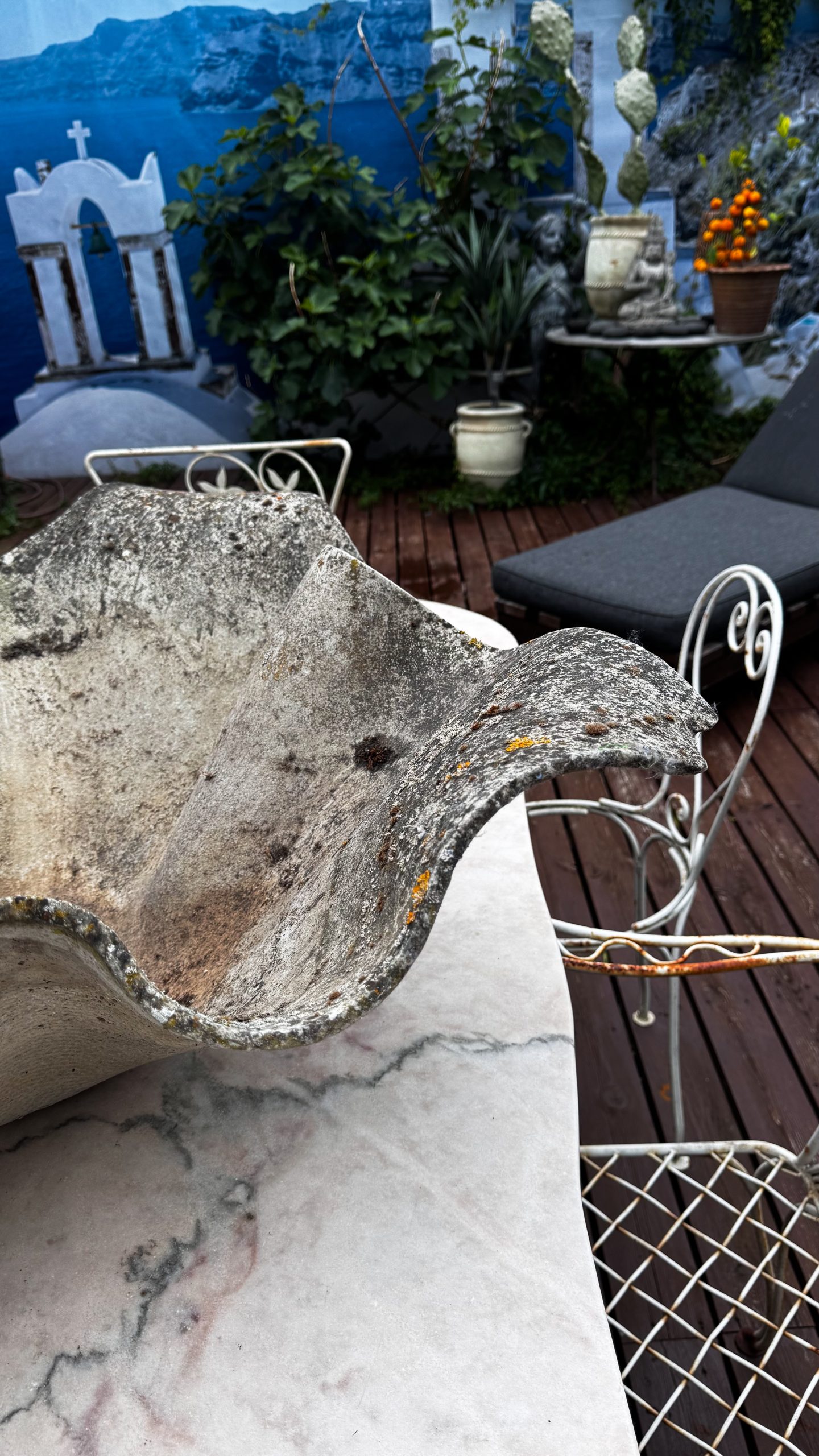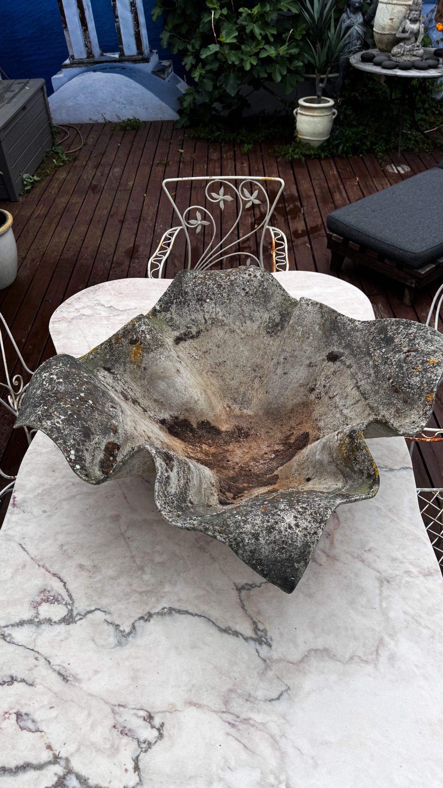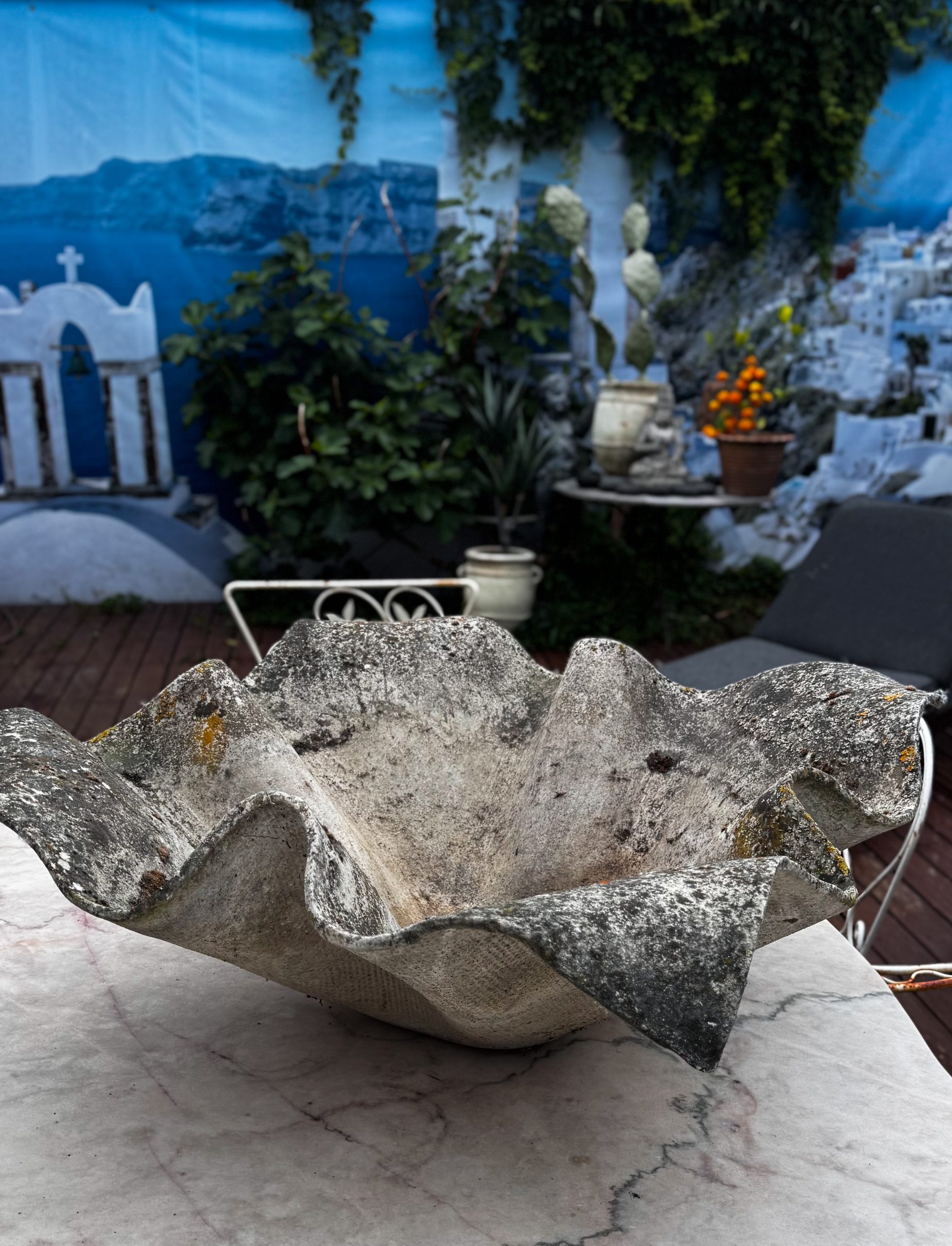 Med sin vågformade silhuett och patinerade yta blir detta objekt ett naturligt blickfång i både trädgård och interiör. Ett samlarobjekt som blivit allt mer eftertraktat världen över.