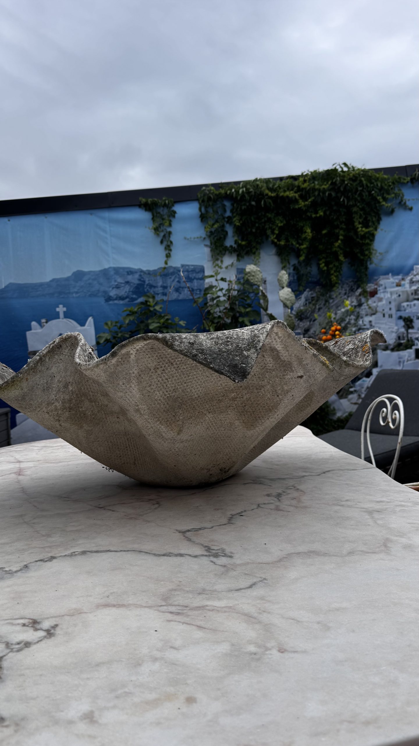 En av de mest ikoniska objekten inom europeisk trädgårdsdesign – denna skulpturala kruka i fiberbetong formgavs av den schweiziske designpionjären Willy Guhl. Formen är inspirerad av blomblad och kombinerar brutalistisk styrka med organisk elegans.